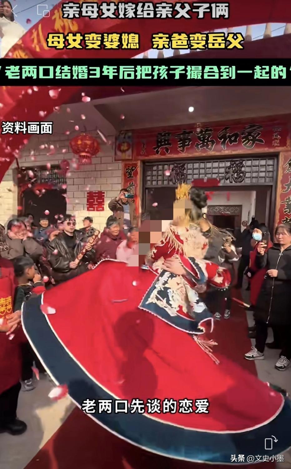 亲上加亲,亲母女嫁给了亲父子! 近日,在安徽淮北一对新人结婚引起了广泛关注,起因是新郎父亲与新娘母亲在三年前认识后喜结连理,女方带一个闺女,男方带一个儿子,两家人变一家人后,生活在一起相处比较融洽! 看到两个孩子比较投的来,于是两口子就撮合他俩在一块了,两个孩子都没有反对,之后顺利举行了婚礼! 有人说这是亲上加亲,兄妹变夫妇,母女变婆媳,亲爸变岳父,省去了结婚彩礼,也减少了很多矛盾,生了孩子以后直接叫爷爷奶奶或者外公外婆! 也有人说这样做不太合适,毕竟是兄妹关系,虽然没有血缘关系,但容易让人误解! 其实,对于当事人来说,没必要去在乎别人的眼光,又不是近亲结婚,对后代没有影响,只要一家人和和睦睦过日子就行了!