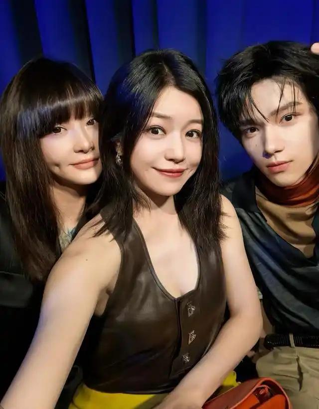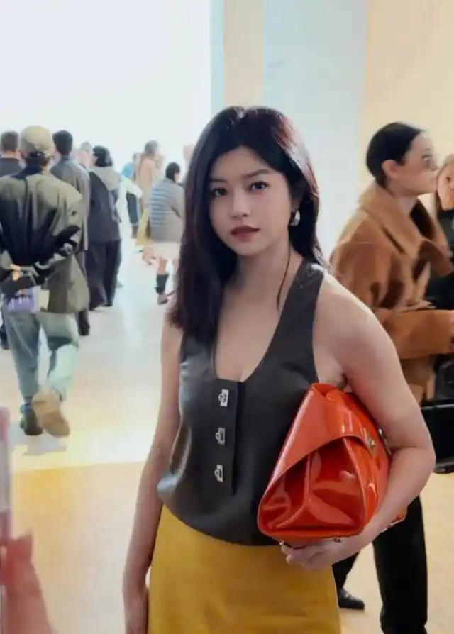陈妍希分享米兰看秀照片,身穿棕色皮背心,成熟有气质