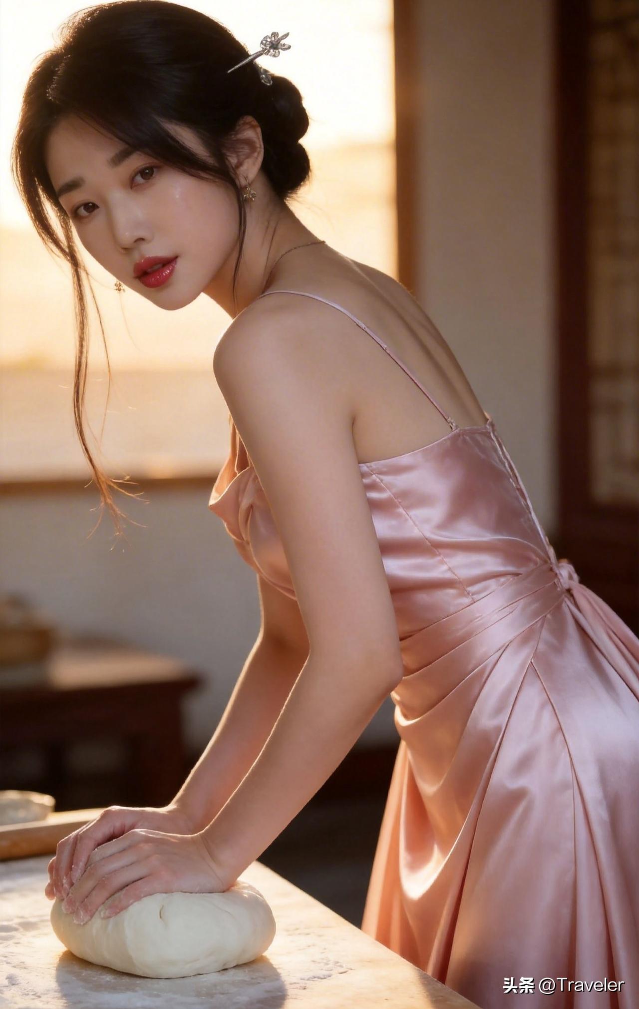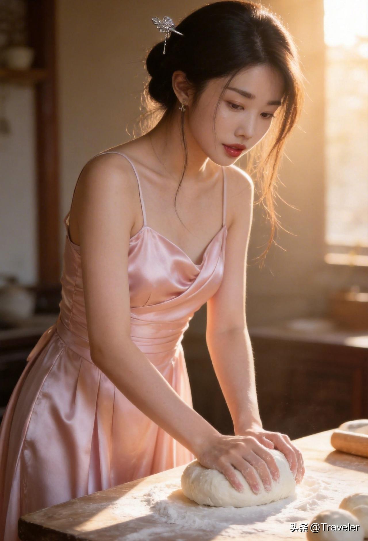 优雅少女烘焙时光,粉裙飘飘,甜蜜烘焙