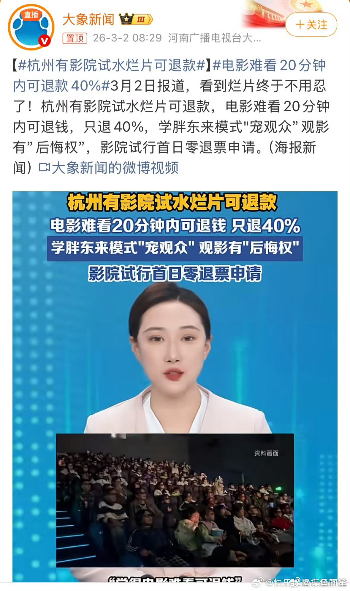 那电影市场基本上全军覆没了电影难看20分钟内可退款40%