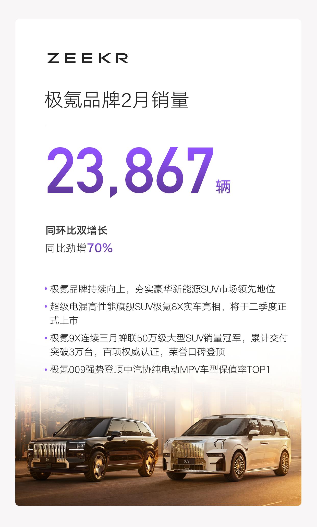 吉利2月销量20.6万,连续两月拿下自主品牌销冠! 新能源占比57%,极氪同比暴涨70%,出口翻倍增长 ——这成绩单,堪称开年“王炸”! 1-2月累计47.6万,完成全年345万目标的13.8%,进度条非常健康。 当新能源占比超过50%,出口翻倍增长,说明吉利的“双轮驱动”真的跑起来了。