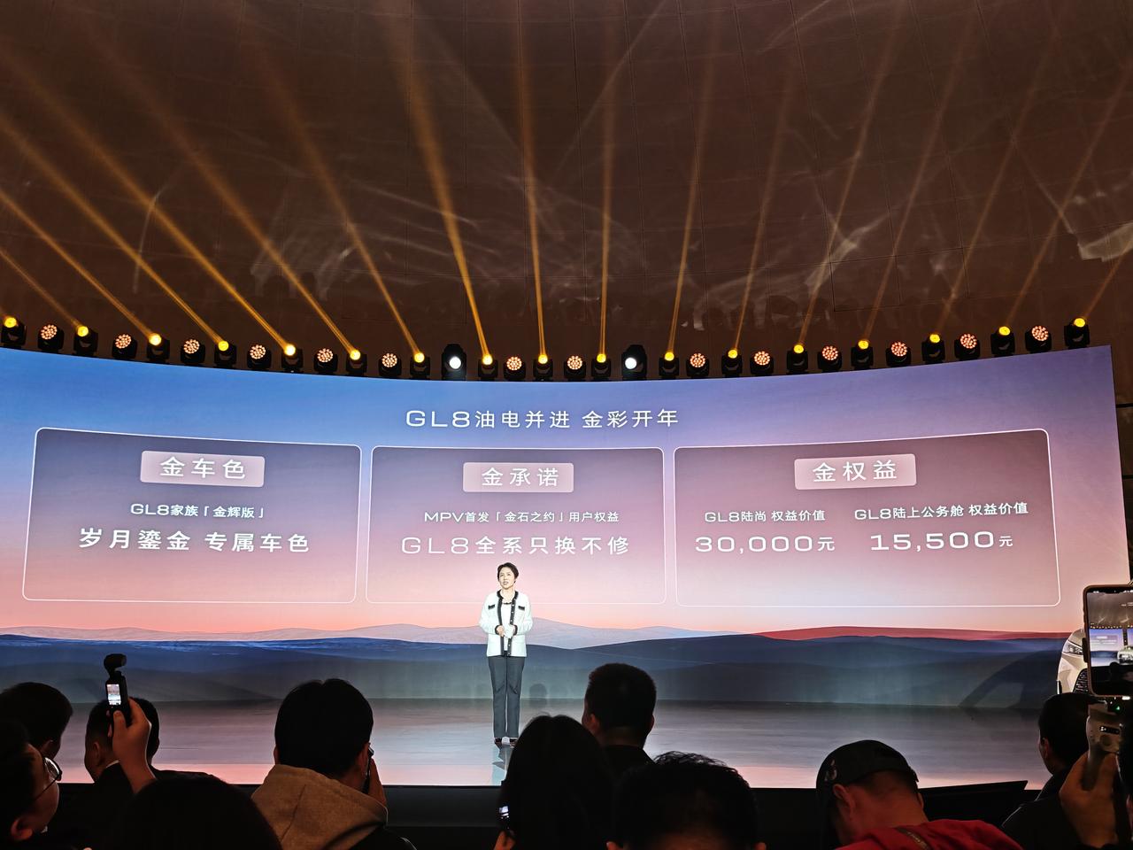 别克MPV新春沟通会划重点了: 1、别克至境世家纯电开始预售,5000元定金抵10000元购车款,预计3月17日上市。96度电池、6C超快充、充电10分钟补能400km、36亿公里零自燃、“五恒”大健康座舱、礼宾空悬、云感贵妇榻全都有。 2、别克GL8家族新增“金辉版”,拥有专属金色。别克GL8首发“金石之约”用户权益,3年内单次车损大于购车价30%,别克免费换新车。GL8陆尚权益价值30000元,GL8陆上公务舱权益价值15500元。 沟通会上有一句话说得好:铁打的GL8,流水的挑战者。别克GL8依旧是MPV领域的金字招牌。MPV就买销冠 MPV就买GL8