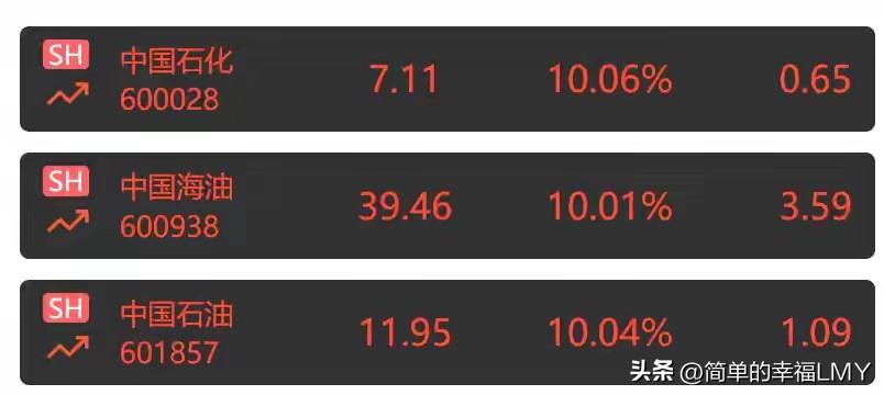 三桶油——中国石油、中国海油、中国石化齐刷刷涨停,连带二十多个油气相关股票也集体封板,这可是股市里头一遭见的新鲜事。 说起来,这奇观背后,中东那片地的局势是推手。霍尔木兹海峡可能被封锁的消息一出来,布伦特原油价格噌地往上蹿,油气板块自然跟着沾光。 但话说回来,石油和化工行业在2026年本就该走上升行情,这是周期规律说了算。就算没有中东这档子事,该涨的还是会涨,美以那通操作,不过是让涨势来得更猛些、更快些罢了。 炒股的都知道,这种板块有个脾气——千万别追高。等看到涨停潮再往里冲,多半要吃瘪。真正能赚到钱的,都是那些提前看透趋势、悄悄埋伏进去的人。 就像种地,得赶在雨水前播下种子,等别人看到庄稼长势喜人再动手,早就错过了时节。油气股这波行情,道理也差不多。周期摆在那儿,地缘冲突不过是加了把火,看懂的人早早就占好了位置,看不懂的跟风追涨,最后可能落得个竹篮打水一场空。 说到底,股市里没有随随便便的奇迹,每一次大涨大跌背后都有门道。三桶油和油气股的集体涨停,看着热闹,实则是周期力量和地缘因素拧成的一股劲。对普通投资者来说,与其盯着涨停板眼红,不如多琢磨琢磨行业规律,下次机会来了,才能稳稳抓住。