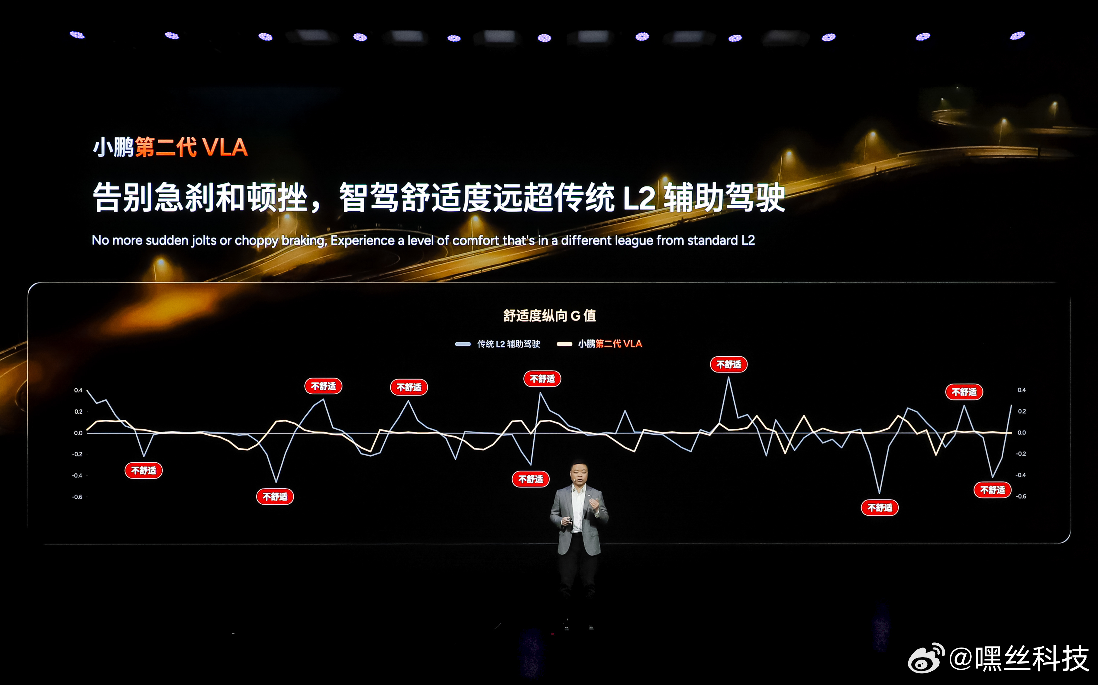 小鹏第二代VLA发布在智驾已经从极客尝鲜进化到全家人都爱用甚至离不开的2026,小鹏正为即将到来的L4时代铺路第二代VLA到底有多丝滑?✅ 成功挑战物理世界图灵测试,很难猜出人在开还是车在开✅ 识别异形车辆、精准识别前车开门、减速带提前减速、夜间识别黑衣人、礼让小动物✅ 夜间深色物体识别率提升 72%,接管次数直降七成,复杂路况也能丝滑避让✅ 自研「洒了么」量化工具,从急刹、摆动等维度客观评估安心感