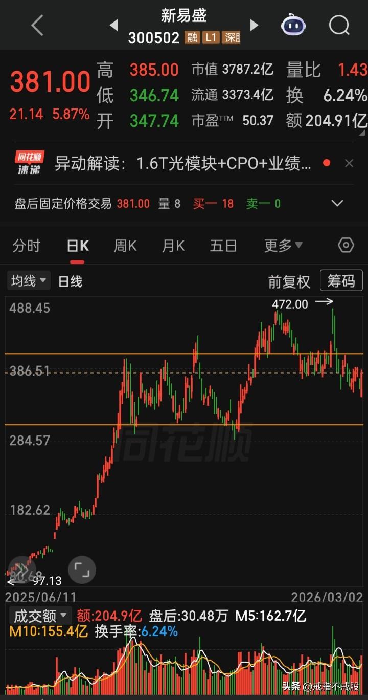 【每日观察2026.03.02】中东战火再燃并进行中,A股总成额自1月29日后再度上3万亿,在总成交额30458亿比上个交易日增量5403亿、上涨1142家下跌4282家、涨停94家跌停21家的情况下,谁在成交额前十 中际旭创275.58亿,涨6.85% 新易盛 204.91亿,涨5.87% 天孚通信198.35亿,跌5.07% 紫金矿业191.42亿,涨3.08% 华胜天成146.11亿,涨3.59% 比亚迪 135.07亿,涨8.36% 北方稀土126.02亿,跌1.06% 特变电工124.75亿,涨3.79% 胜宏科技119.26亿,跌0.25% 中国卫星119.24亿,涨9.26%