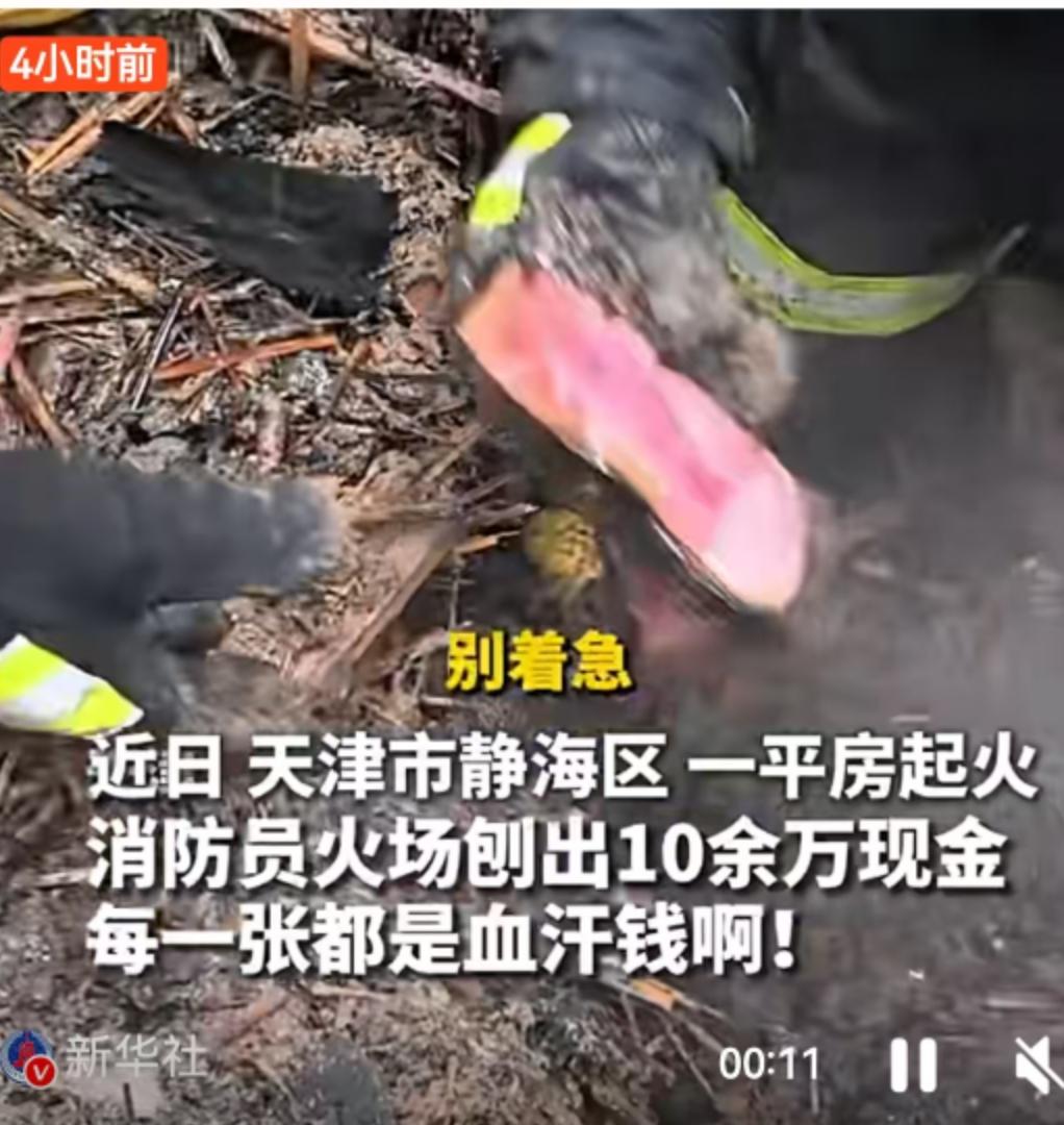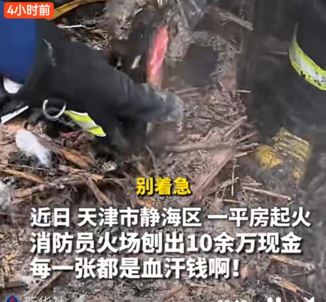 大火无情,人有情。这句话我们在新闻里听过无数次,但当真正的画面摆在眼前时,那种冲击力依然能瞬间击穿人心的防线。 近日,天津市静海区一处平房突发火灾。现场火势凶猛,浓烟滚滚,原本承载着一个家庭遮风避雨功能的屋舍,在烈焰的吞噬下变得面目全非,最终不幸坍塌,化为一片废墟。对于任何一个普通家庭来说,家园被毁都是难以承受之重,而在这片焦黑的残垣断壁之下,还埋藏着这户人家更为沉重的希望——十余万元的现金积蓄。 这十万多元,不是一个冷冰冰的数字,每一张纸币都浸透着这户人家无数个日夜的辛劳与汗水。对于习惯现金存储的老百姓来说,这或许是他们半生的积蓄,是给孩子准备的学费,是给老人留的看病钱,也是应对未来不确定性的底气。火灾发生时,逃生是本能,这些身外之物根本来不及转移,只能眼睁睁看着它们被埋入废墟。 救援结束后,火场余温尚存,满地狼藉。面对屋主绝望无助的眼神,现场消防员没有选择转身撤离。他们深知,对于老百姓而言,挽救财产同样是救援的重要一环。在这片随时可能有复燃风险、混杂着碎砖烂瓦与焦木的废墟上,消防员们开始了另一场特殊的“战斗”。 没有大型机械,也没有趁手工具,他们选择了最原始也最稳妥的方式——徒手挖掘。 这一幕,被现场视频记录了下来,也深深印刻在围观群众的心里。消防员们俯下身子,在一片漆黑与灰烬中仔细翻找。手套也许早已被汗水浸湿,也许早已磨破,但他们顾不上这些。动作必须轻,怕用力过猛损毁了那些脆弱的纸币;速度必须快,想尽快帮群众挽回损失。指尖触碰到的,可能是滚烫的瓦砾,也可能是锋利的碎玻璃,但在那一刻,他们心中只有一个念头:能多扒出一张是一张。 随着一张张被烟熏黑、甚至带着焦痕的钞票被从废墟中清理出来,现场气氛从最初的揪心逐渐转为一丝欣慰。经过不懈努力,这十余万元现金终于全部被找到,并交回到了屋主手中。 当那双戴着消防手套的大手,将这一沓沓并不平整、甚至有些残破的现金递过去时,递回来的不仅仅是财富,更是生活的希望。正如网友所言:“废墟可以掩埋房屋,却掩埋不了人间的温暖;火焰可以烧毁财物,却烧不毁守护的担当。” 这起发生在天津静海区的救援,让我们看到了消防员职责之外的温情。灭火救灾是他们的天职,是职业素养的体现;而愿意在烈火退去后,弯下腰在废墟里一点点扒出群众的“救命钱”,则是对“人民消防为人民”最生动的注解。这种“急群众之所急,想群众之所想”的本能反应,往往比惊心动魄的救火场面更能打动人心。 这十万多元,每一张都是血汗钱,而为了守护这些血汗钱,消防员们付出的努力同样值得被铭记。这不仅是一次物质的挽回,更是一次精神的救赎,它让身处困境的家庭感受到了社会的温度,也让我们看到了平凡英雄身上不平凡的光芒。 生活总有意外,但总有人会在废墟上为你点亮微光。向这些守护者致敬,也希望每一份辛勤的积蓄都能被妥善安放,每一个家庭都能平安顺遂。 以上内容仅供参考和借鉴