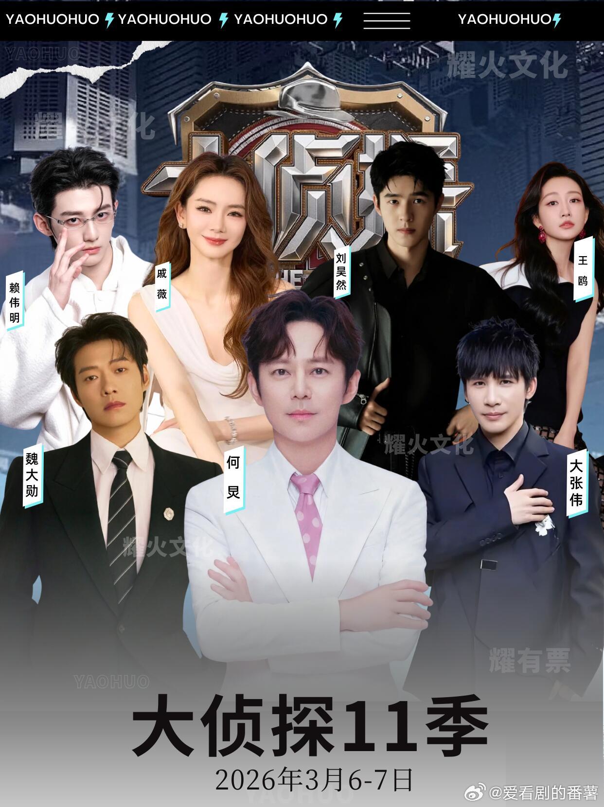《大侦探》第十一季(第 9、10 案)核心信息:⏰ 录制时间:第 9 案:2026 年 3 月 6 日第 10 案:2026 年 3 月 7 日✨ 暂定嘉宾:3 月 6 日(第 9 案):何炅、大张伟、魏大勋、戚薇、赖伟明、刘昊然3 月 7 日(第 10 案):何炅、大张伟、李维嘉、吴昕、王鸥、刘昊然
