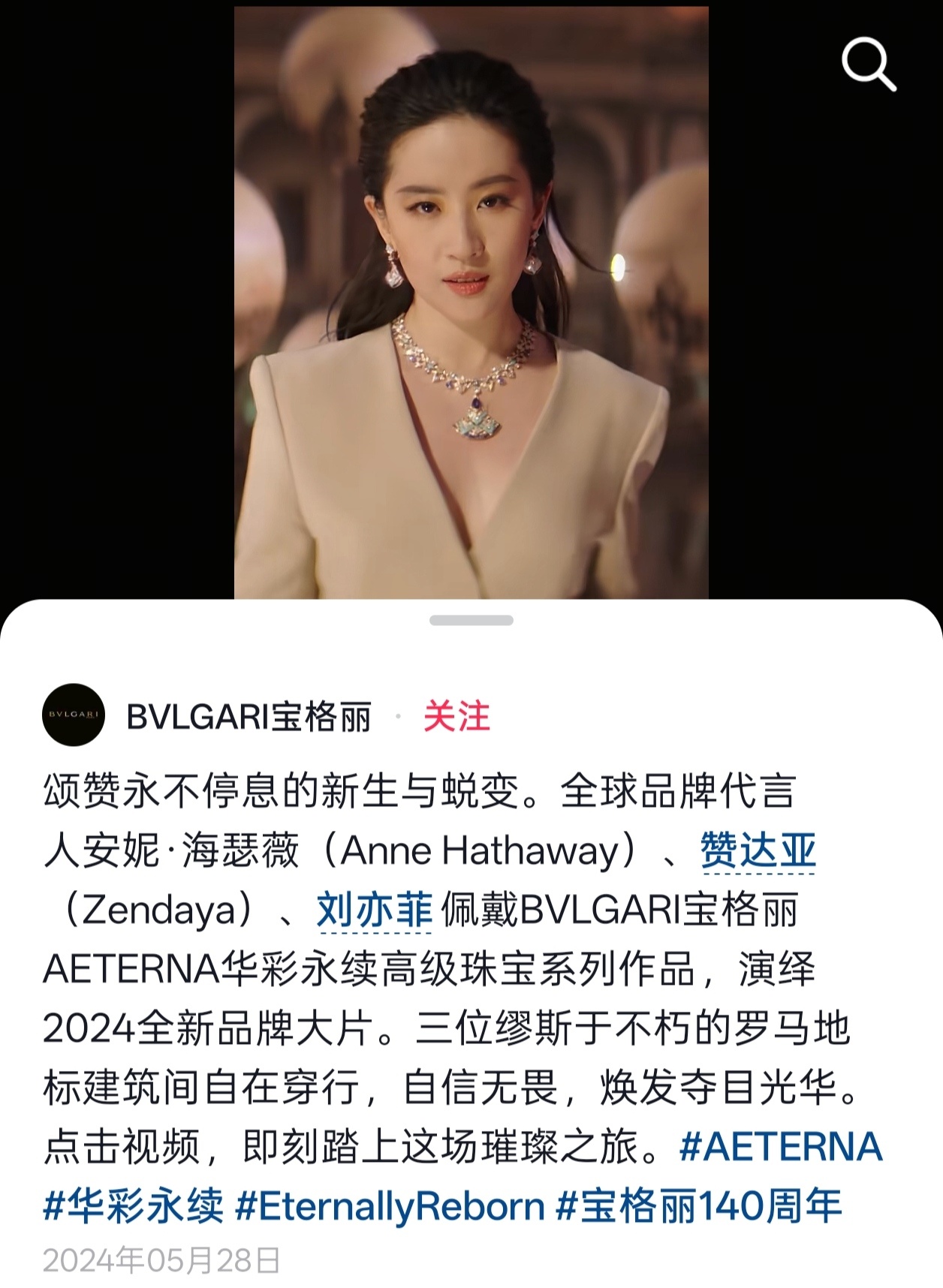 大牌周年全球广,刘亦菲好多啊!全是百年以上LV Monogram 130周年全球广告宝格丽140周年华彩永续高珠全球广告资生堂150周年全球广告