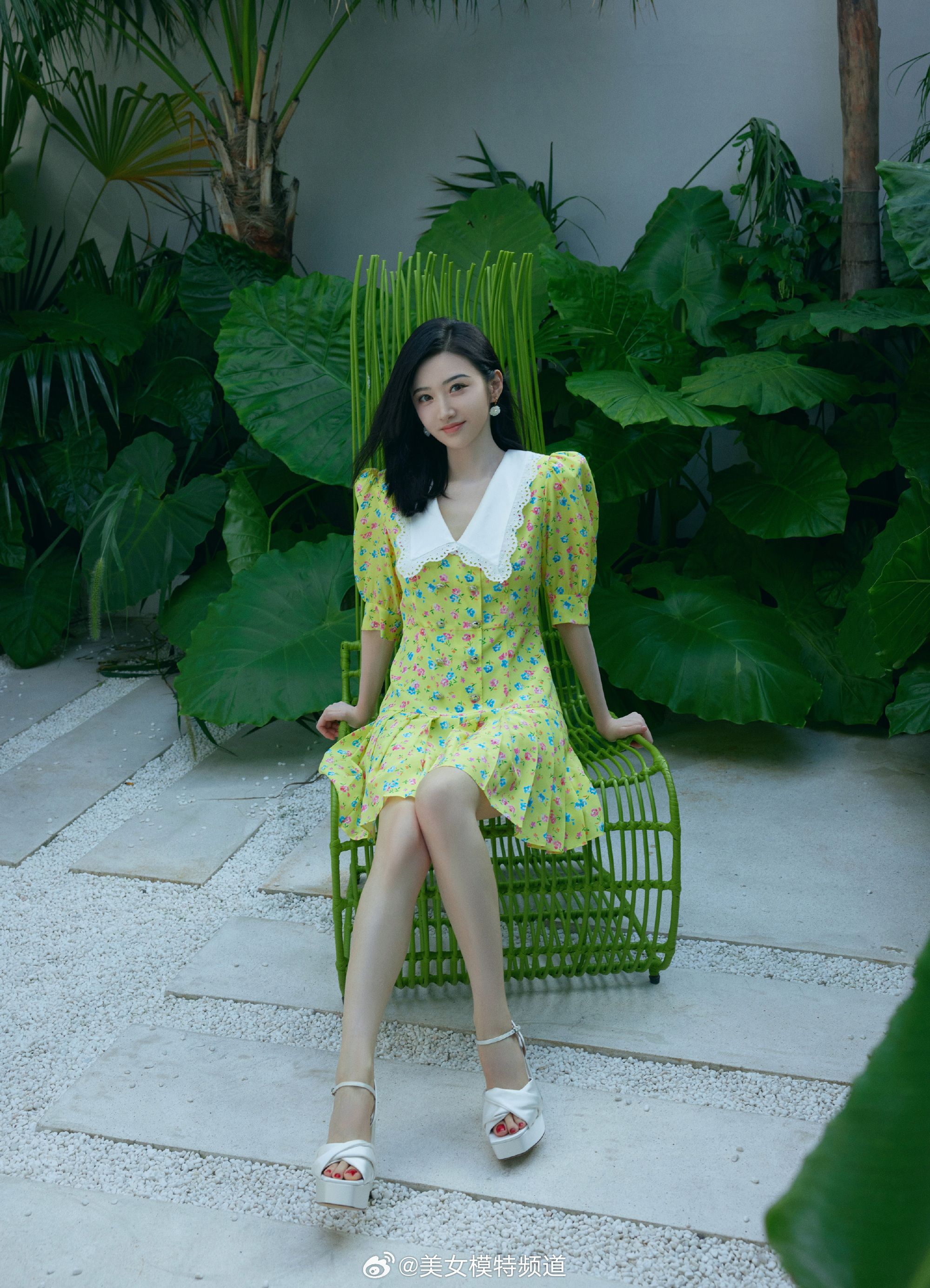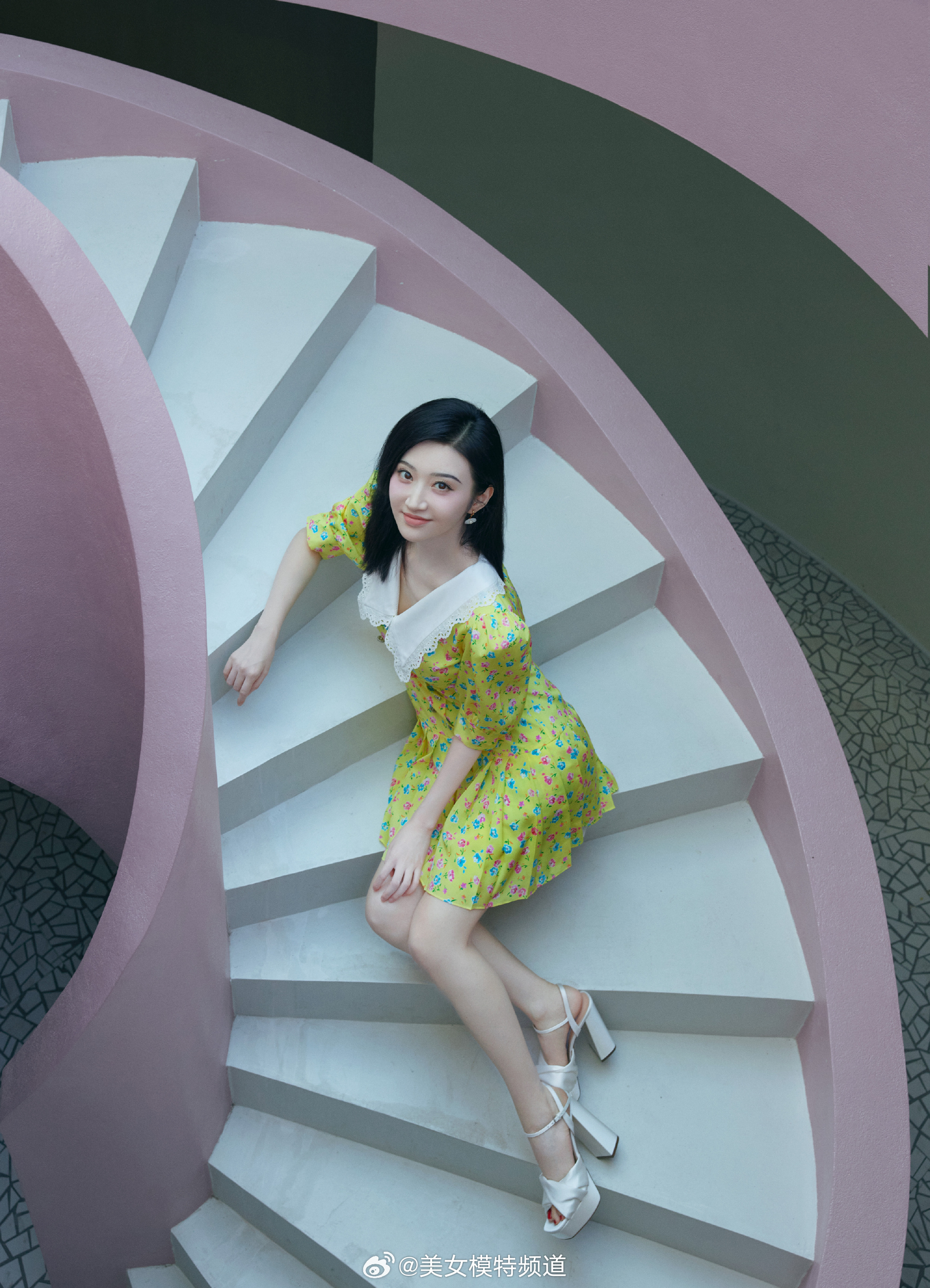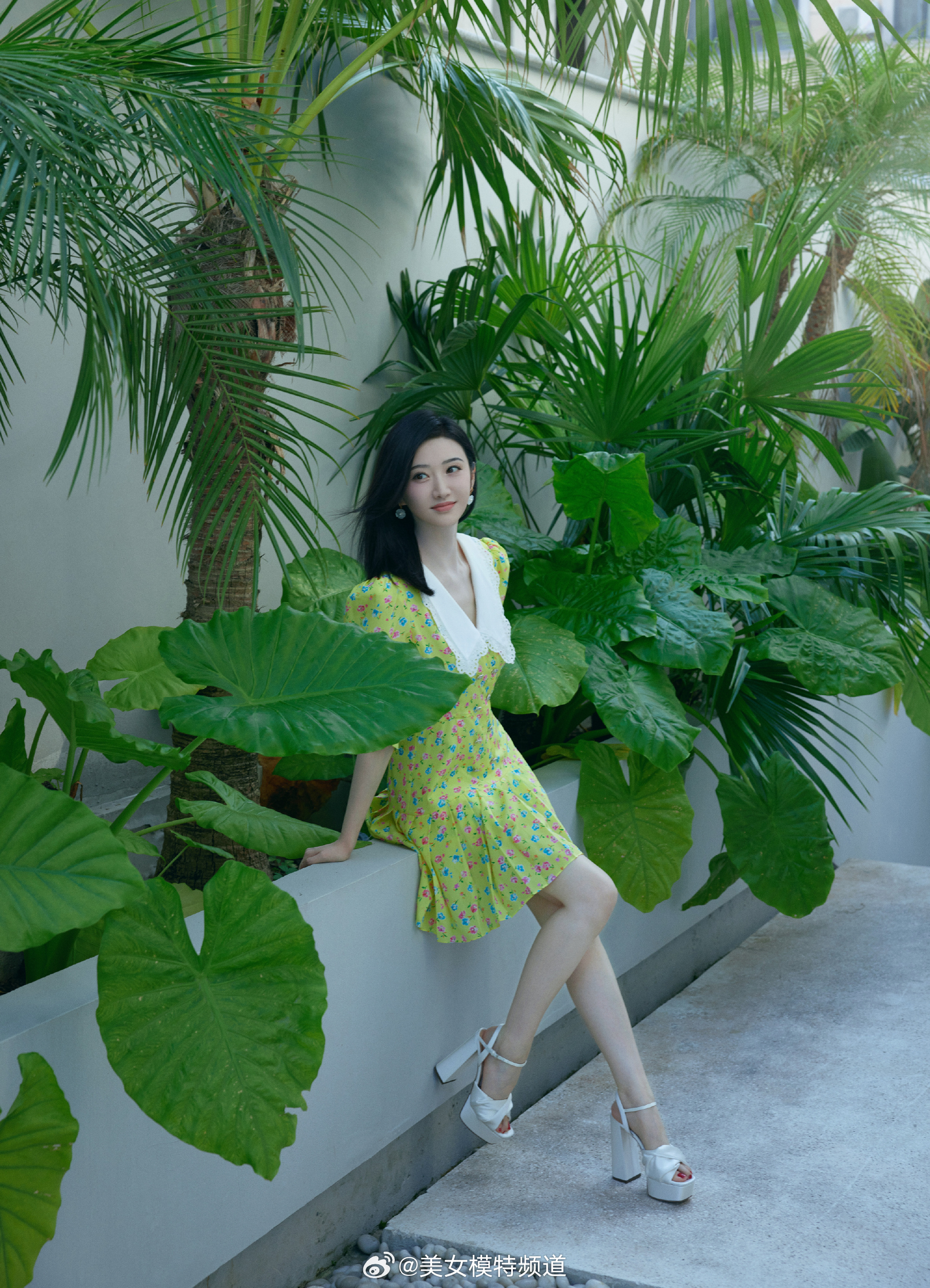 景甜碎花裙写真