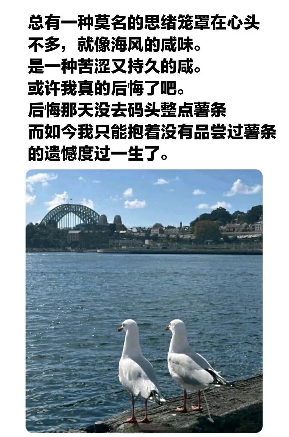 人生本就没有意义当你老了时你绝对会因为当时没有去码头整点薯条而后悔