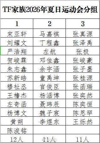 26年夏日运动会分组接一个,如果这样分组的话我将逐帧观看TF家族运动会‖TF夏日