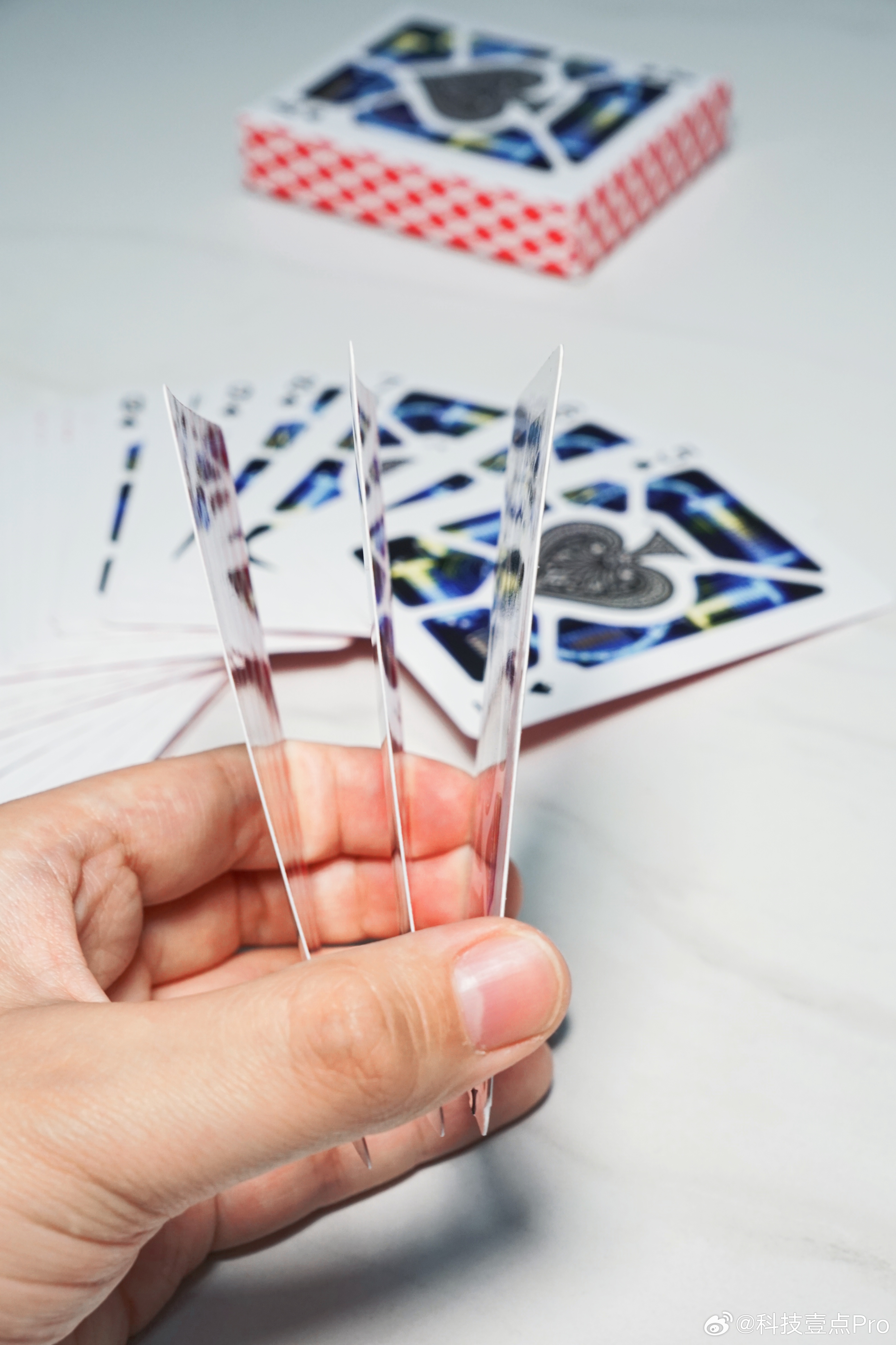 我第一次打开扑克牌的时候,真没发现第一张牌是块电池,因为和普通牌的厚度几乎一样,大家可以看下图四的对比。