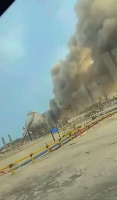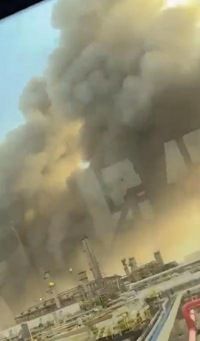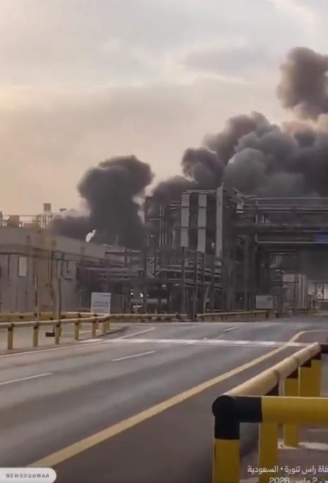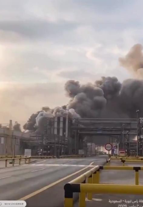 突发新闻:伊朗无人机袭击沙特阿美位于拉斯塔努拉的石油设施,引发重大火灾。 一段显示沙特阿美设施发生火灾的视频地理位置位于拉斯塔努拉。大致视角:26.69105, 50.09659;火灾大致位置:26.6949, 50.0972