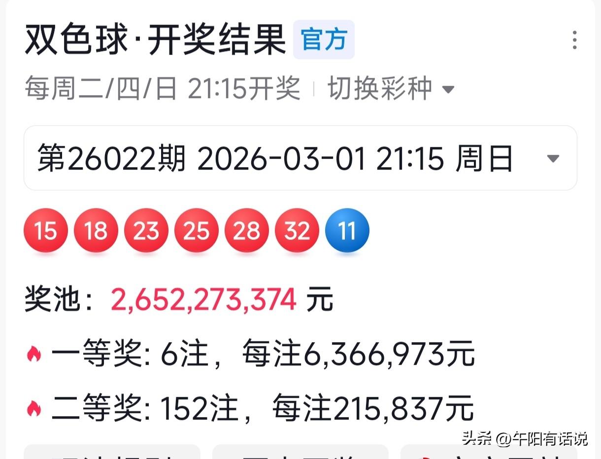 双色球26023期号码共享,红色球关注三区热开,蓝色球防2路号回补 开奖快讯 双色球26022期开奖号码为: 15 18 23 25 28 32 + 11 红色球号码走势 本期红色球开奖号码三区比开出了0:2:4的比值,红一区号码在连续冷开两期之后,本期冷态进一步加剧,直接开出了断区。 前一段时间,红一区号码一直处于热开状态,而且热度非常高,三码和四码奖号开出频繁。最近几期,明显进入了回调期,先是出现了单期回调,随后又出现了短暂反弹。 最近三期则进入到持续回调阶段。不过,由于红一区号码整体热度较高,且已连续回调多期,预计接下来返热的概率较大。 在红一区号码出现冷开的同时,红三区号码则进入到了盛开期,尤其是在最近两期,连续两期开出了四个奖号,将红一区号码热度推向巅峰,由于当前红三区号码热度较高,预计接下来继续热开的概率较大。 蓝色球号码走势 本期蓝色球奖号开出了号码11,在间隔一期之后,2路号码再次开出。最近一段时间,1路号码一直处于疯狂热开阶段,不过在最近几期,2路号码开始出现回补。 最近四期奖号012路走势,呈现出1路和2路交替开出状态,说明2路号码开始由冷转热。而0路号码已遗漏七期,有越来越冷的趋势,预计接下来继续冷开的概率较大。 双色球26023期晒号 红色球: 05 06 11 13 18 21 26 29 30 蓝色球: 02 08 14 精选一注 05 11 13 26 29 30 + 02