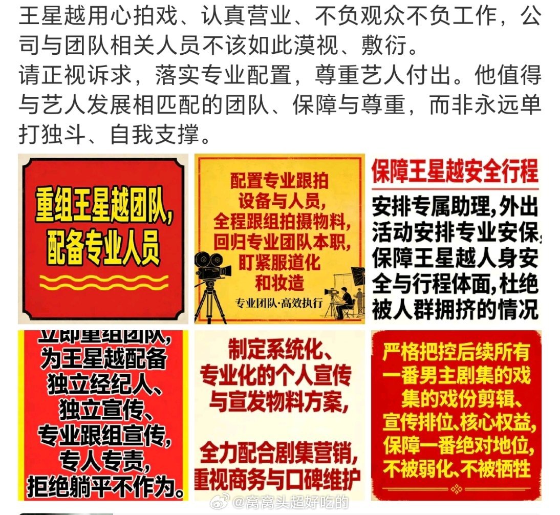 王星越粉丝在维权,要求公司和团队跟上艺人步伐,拒绝躺平,保障艺人权益。