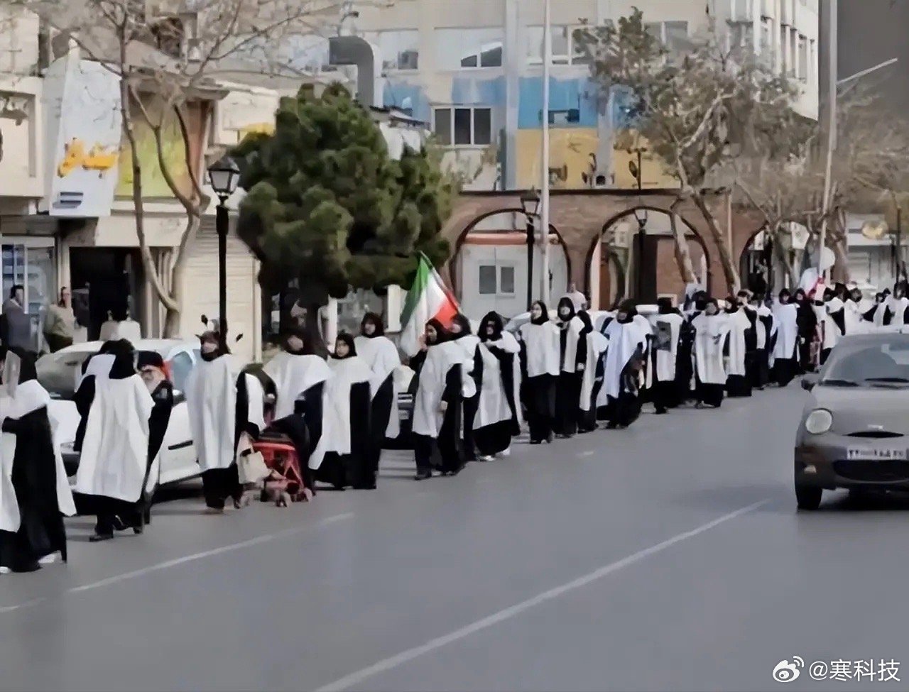 两伊战争持续八年都没有出现的场面,在哈梅内伊殉道后出现了。伊朗人“穿着自己的丧服”,宣示他们已做好准备,在战争中牺牲。