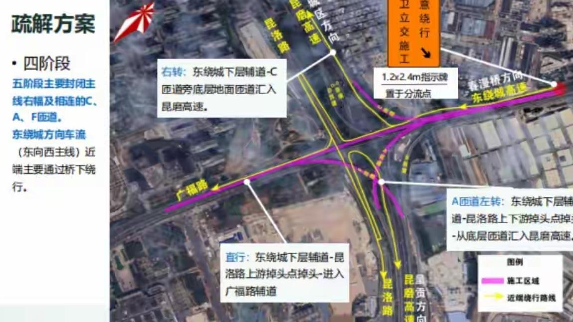🔥紧急!昆明广卫立交占道施工,这些车请绕行。昆明车主注意!3月2日起广卫立交占道施工至17日,部分匝道封闭,仅保留单车道通行,极易拥堵。经开区↔呈贡、春漫大道↔新螺蛳湾、昆玉高速↔广福路车辆,建议走桥下→昆洛路掉头绕行。提前规划路线,避开施工路段,不扎堆、不抢行,平安顺畅出行!广福路下穿立交 昆明道路指示牌