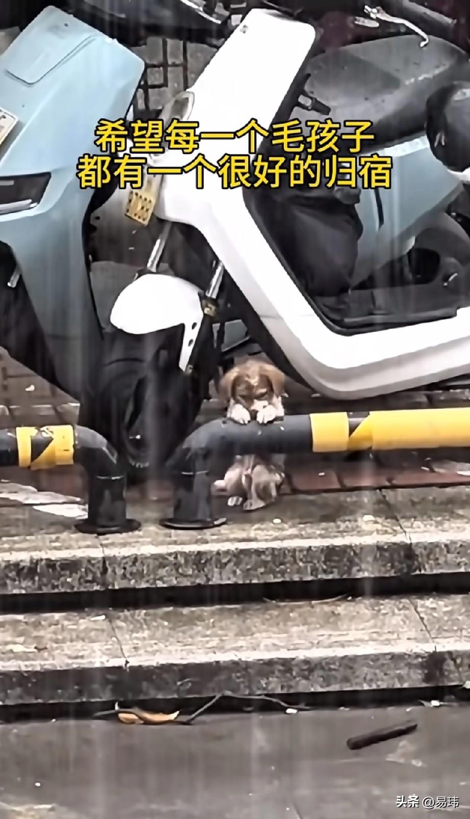 泪目了!这天一位小姐姐下班回家,由于下着雨,她只好撑着雨伞慢慢的走回家,当她走到一条马路上的时候,看到非常凄惨的一幕,一只可怜的流浪小狗正趴着路边的防撞梁瑟瑟发抖,也不知道是太冷还是害怕,那楚楚可怜的样子,实在令人难过。 善良的小姐姐顿时心生怜悯之心,于是举动救助收养它,她走过去把它抱起来,然后用衣服把它抱起来,带去医院检查并打了疫苗,之后就把它带回家收养了,相信在她的照顾下小狗也会越来越好的。