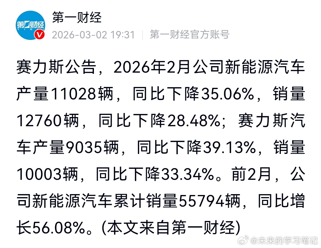赛力斯发布2月份产销报,其中销量10003台。这个和智界的产销报一样,是批售销量,和实际交付量无关,不用过度解读问界汽车