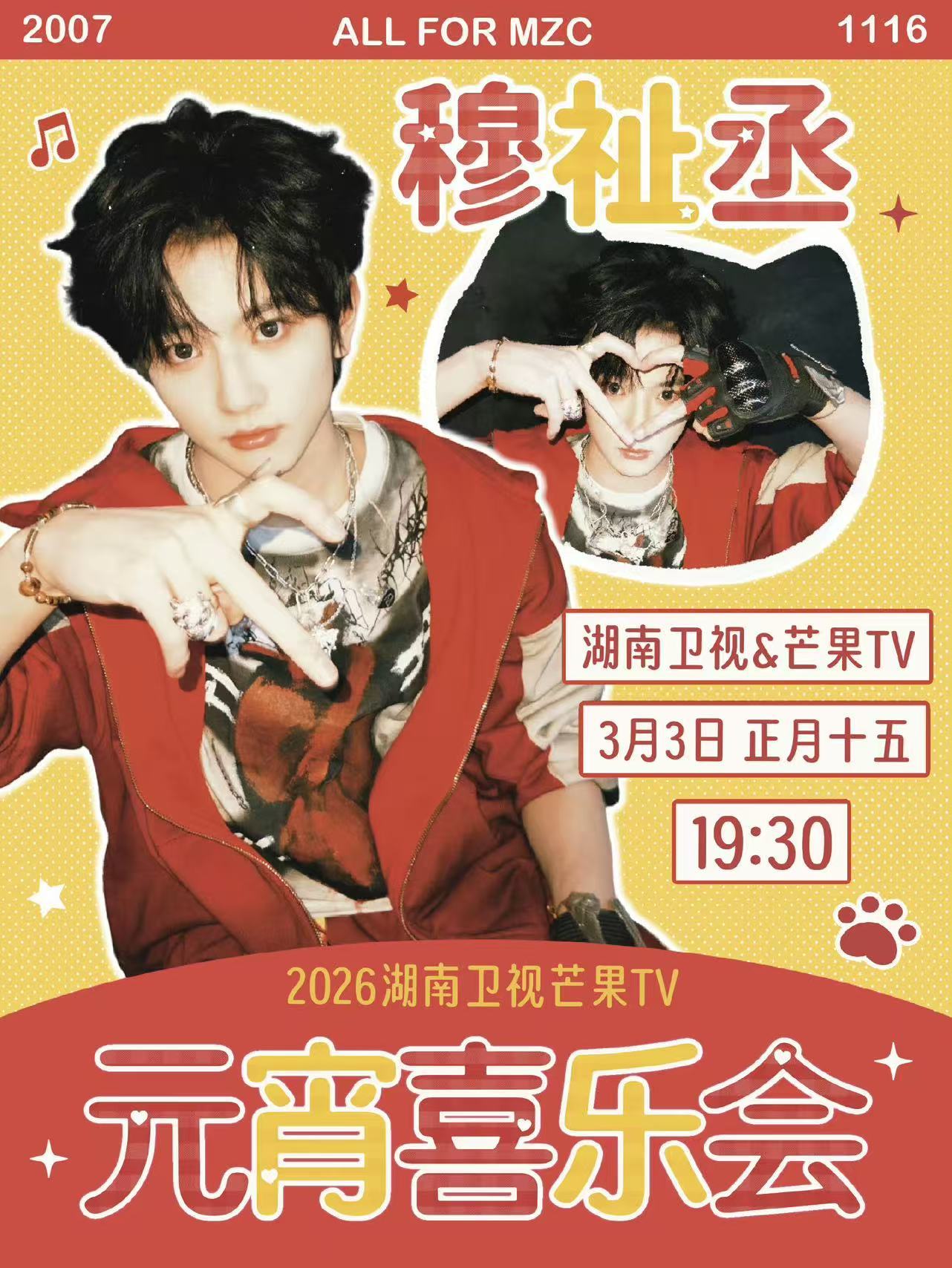 穆祉丞穆祉丞元宵喜乐会三个节目💖穆祉丞元宵喜乐会 明天就是元宵节,要看什么呢?哦!原来要看穆祉丞三个合作舞台呀!一起期待穆祉丞和前辈以及队友合作的精彩舞台呀!超话创作官