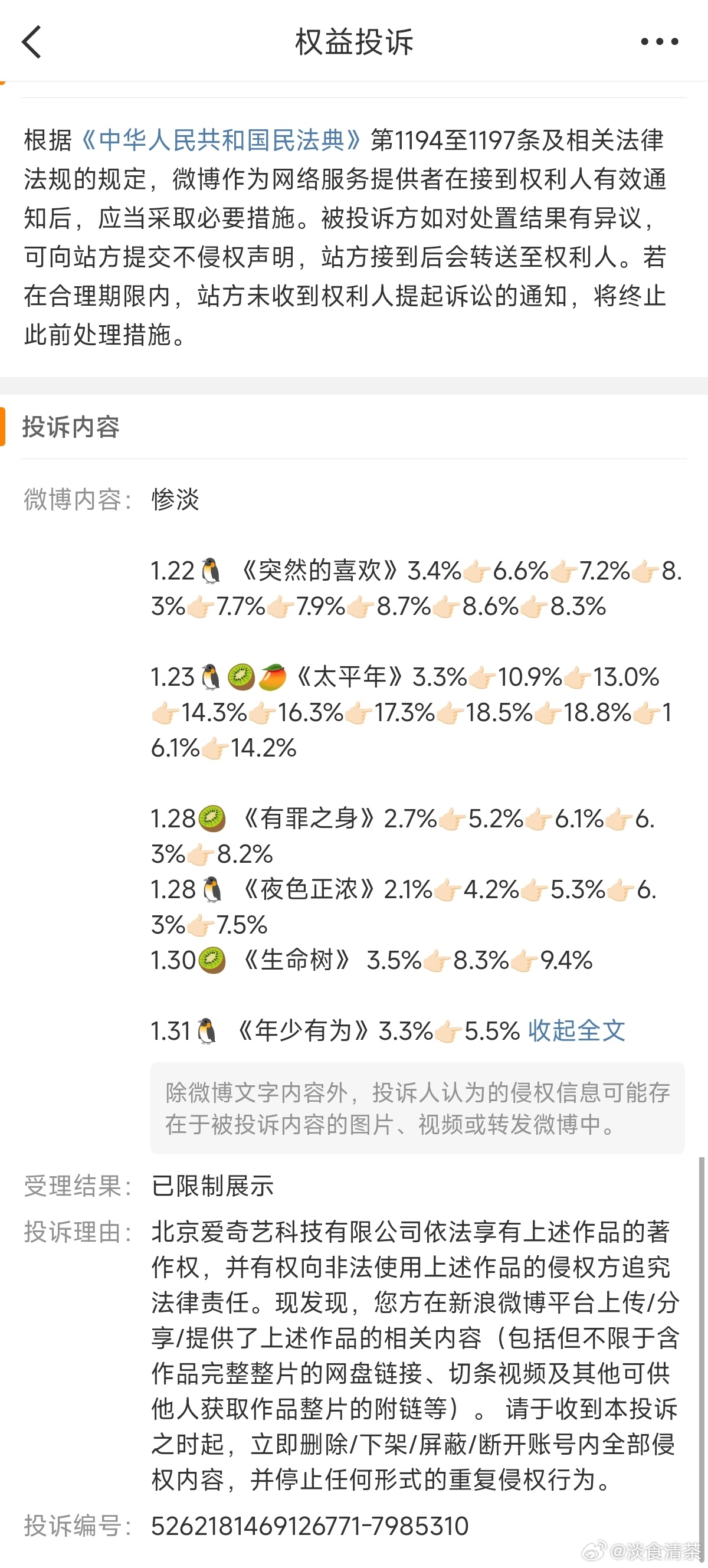 第一次因为这种内容的微博被投诉