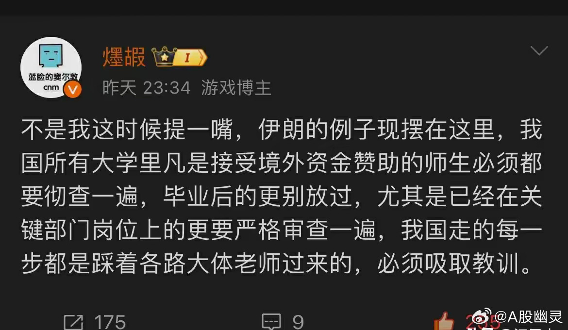 强烈支持,国家彻查大学里接受外国资金的师生!前面委内瑞拉总统在其国内直接被🚁抓走,现在伊朗高层被一锅端几十个人……可见,千里之堤毁于蚁穴,内部敌人比外部敌人危害大一万倍。