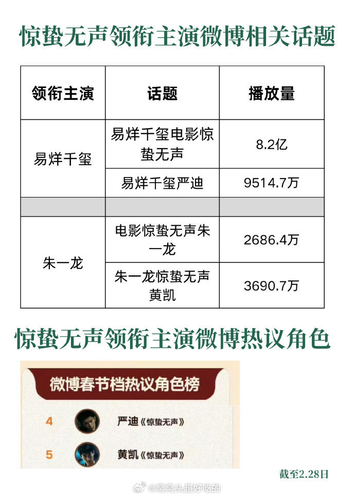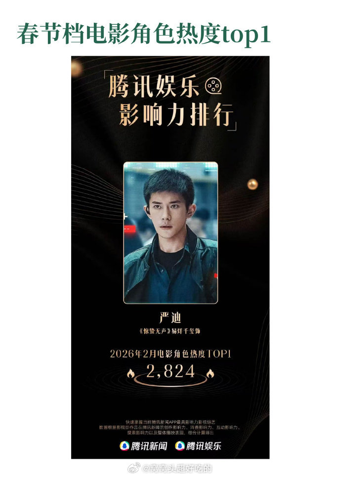 2026年春节档电影《惊蛰无声》的上映周期中,领衔主演易烊千玺塑造的角色严迪,在全网热度表现上断层领跑,展现了易烊千玺强大的市场号召力与角色影响力!千玺牛!