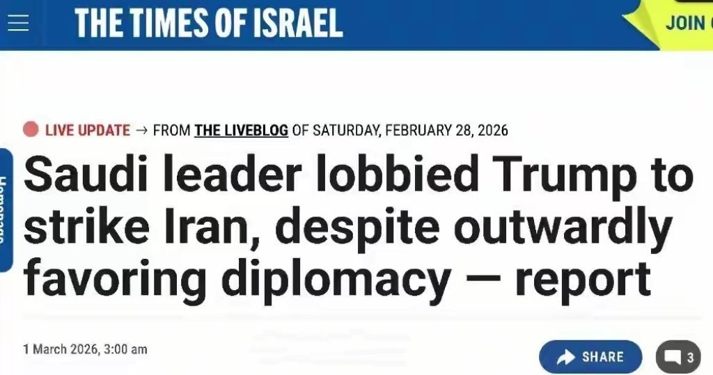 军对伊朗发起突袭后,《以色列时报》抛出文章,声称是沙特游说特朗普攻打的伊朗。然后,这个说法被病毒式扩散。