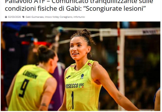 朱婷之科内利亚诺 – 关于加比身体状况的安慰性公告:"排除了受伤风险" 科内利亚诺俱乐部发布了一则关于加比身体状况的安慰性公告: "在昨天于韦尔德球馆与布斯托的季后赛比赛中意外被撞击到左侧腰部后,巴西接应球员加比当晚立即在特雷维索的 Ca’ Foncello 医院接受了救治,并进行了影像学检查,排除了骨折或内部损伤。 检查结果令人放心,因此从今天起,球员将开始接受俱乐部理疗师的治疗,医疗团队将每日监控她的状况"。 在稍早前的报道中,正如主教练丹尼尔·桑塔雷利在赛后采访中所说,在昨天科内利亚诺对阵布斯托的比赛中,巴西人主攻加比在比赛中与朱婷发生碰撞后离场。球员明显感到疼痛,在替补席上由俱乐部医务人员护理,她左侧腰部敷着冰袋。一些新闻来源称她去急诊进行了检查。 人们期待了解她的真实状况,以备战将于周三晚 20:30 对阵布斯托的第二场比赛。 来源:电子排球杂志