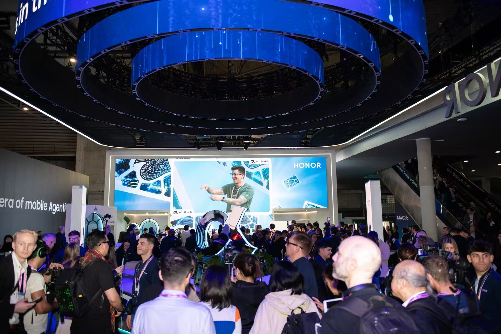 3月2日西班牙巴塞罗那大会上,荣耀的AI智能创新吸引了全球媒体及行业专家的高度关注,荣耀首款具身智能人形机器人也在此次MWC上亮相,