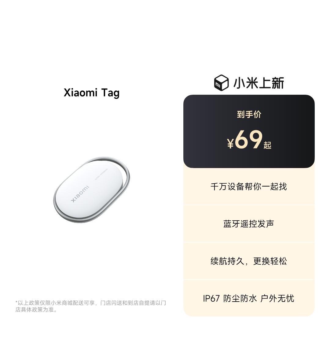小米Tag追踪器售价69元起小米Tag来了,标准版售价69,UWB版售价129,关键还适配iPhone,苹果用户也能用