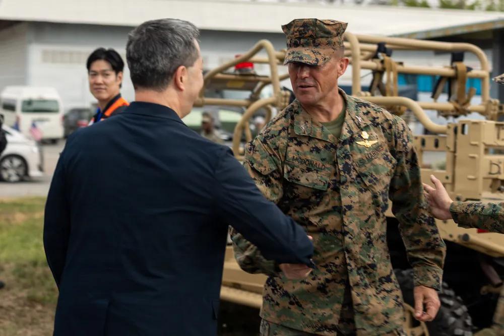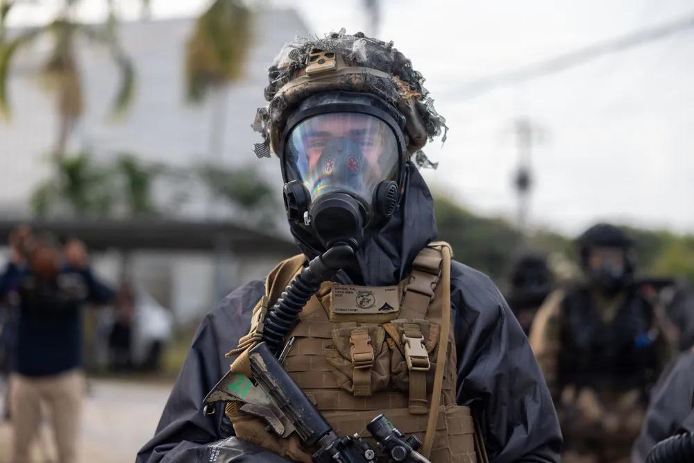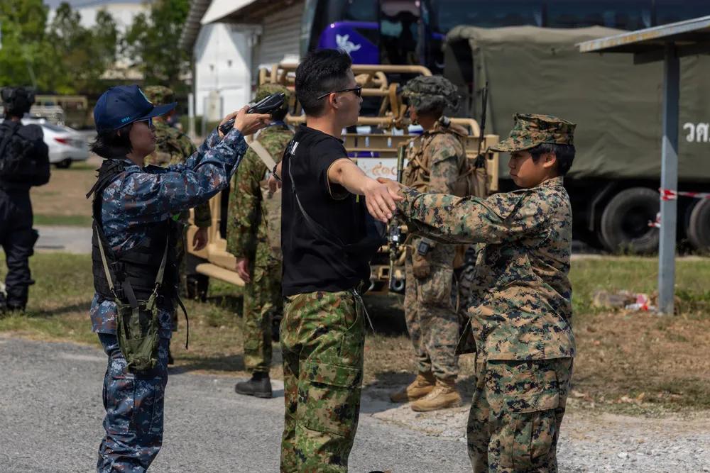 2026年2月25日,隶属于美军第15海军远征部队、第一海军远征军的化学、生物、放射和核(CBRN)军官,在泰国乌塔保举行的“眼镜蛇黄金”演习非战斗人员撤离行动中与外国盟友规划演习方案。 “眼镜蛇黄金”是印太地区在亚洲大陆最大的年度军事演习,由美泰联合主办。该演习汇聚了来自多个国家的参与者,进行军事训练和人道主义项目,以加强区域伙伴关系。