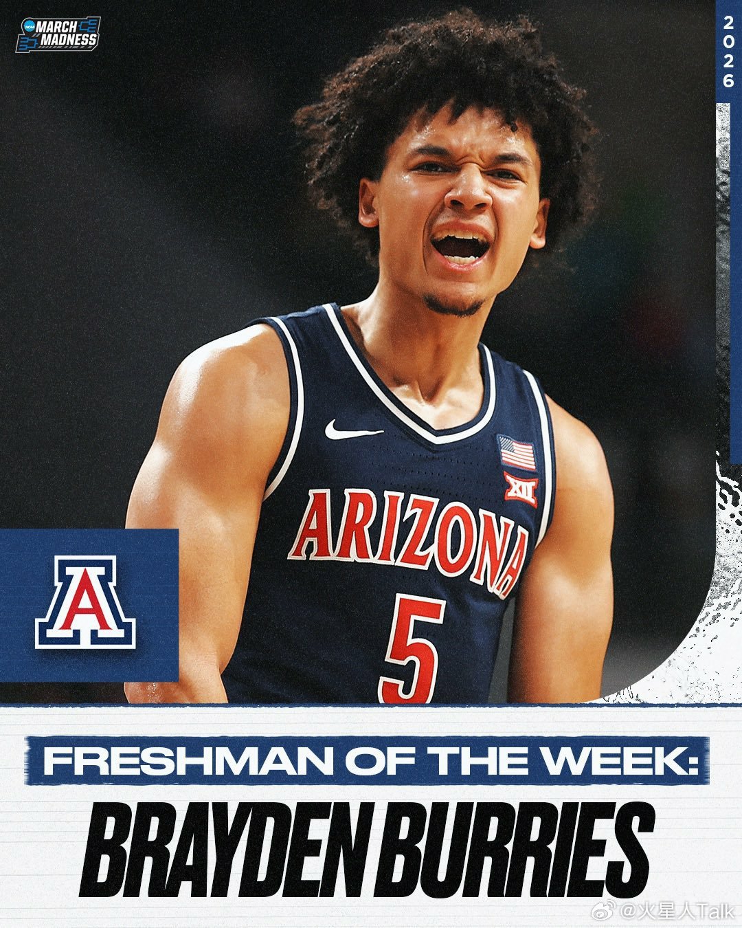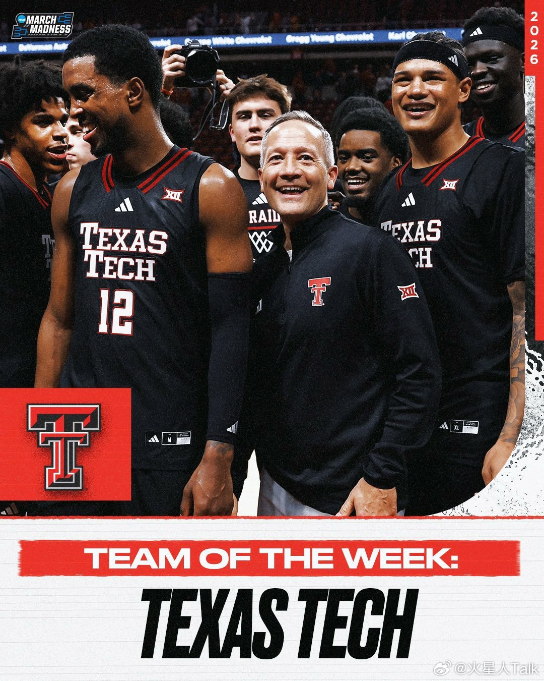 NCAA官网第17周NCAA男篮最佳球队:德州理工大学,最佳球员:Nick Martinelli,最佳新人:Brayden Burries