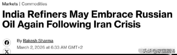 印度正在考虑,增加俄罗斯石油购买量,因为中东战争导致之前根据与美国的协议而减少的采购需要增加。彭博社引述消息人士报道称,这一决定正在进行中。 俄罗斯供应曾被中东供应所弥补,但现在正在减少。 印度官员在周末讨论了如何应对供应危机。石油部代表指出,储备只够两周使用,因此他们敦促当局与华盛顿讨论增加俄罗斯石油购买的可能性。