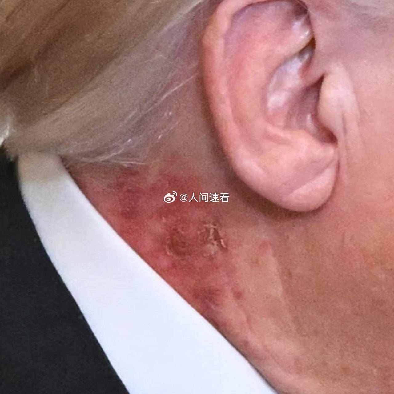 特朗普颈部出现红色皮疹 特朗普颈部出现大片红色皮疹,特朗普的医生肖恩·巴尔巴贝拉表示: