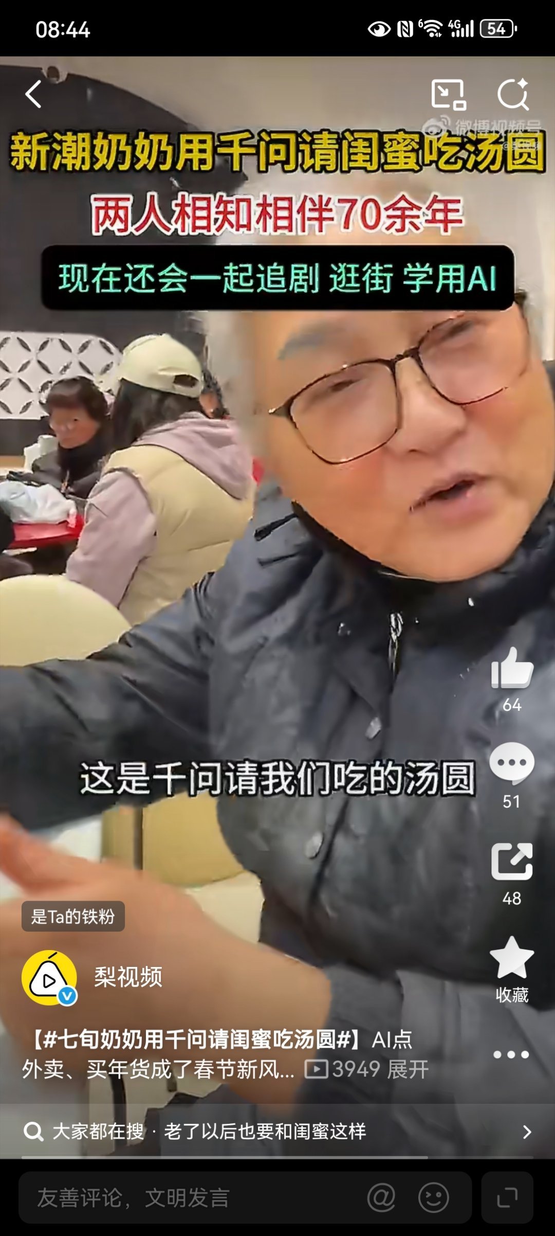 七旬奶奶用千问请闺蜜吃汤圆这则新闻展现了科技如何温馨融入老年生活。上海一对相伴70多年的闺蜜,不仅在元宵节相约赏灯,更主动用AI点汤圆外卖,独立度过属于她们的节日。她们乐于学习、互相请教的态度,以及“怎么开心怎么来”的生活哲学,生动诠释了“老有所乐”与终身学习的美好,这正是科技服务于人真实需求与情感连接的意义所在。老了以后也要和闺蜜这样