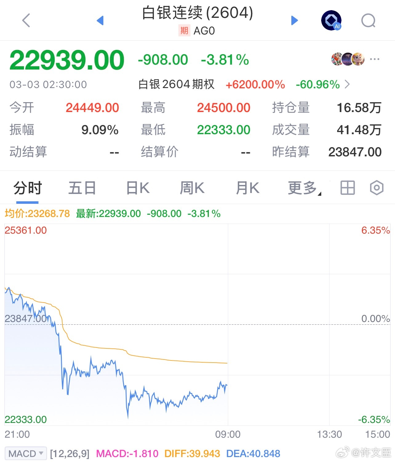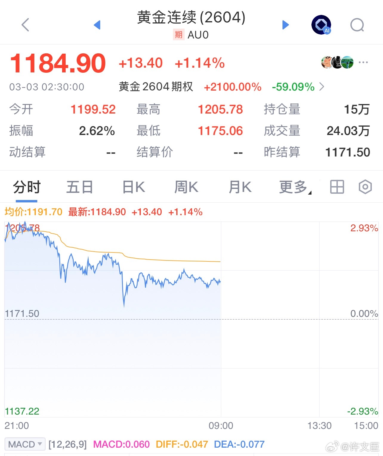 黄金白银 出现回落。许文臣