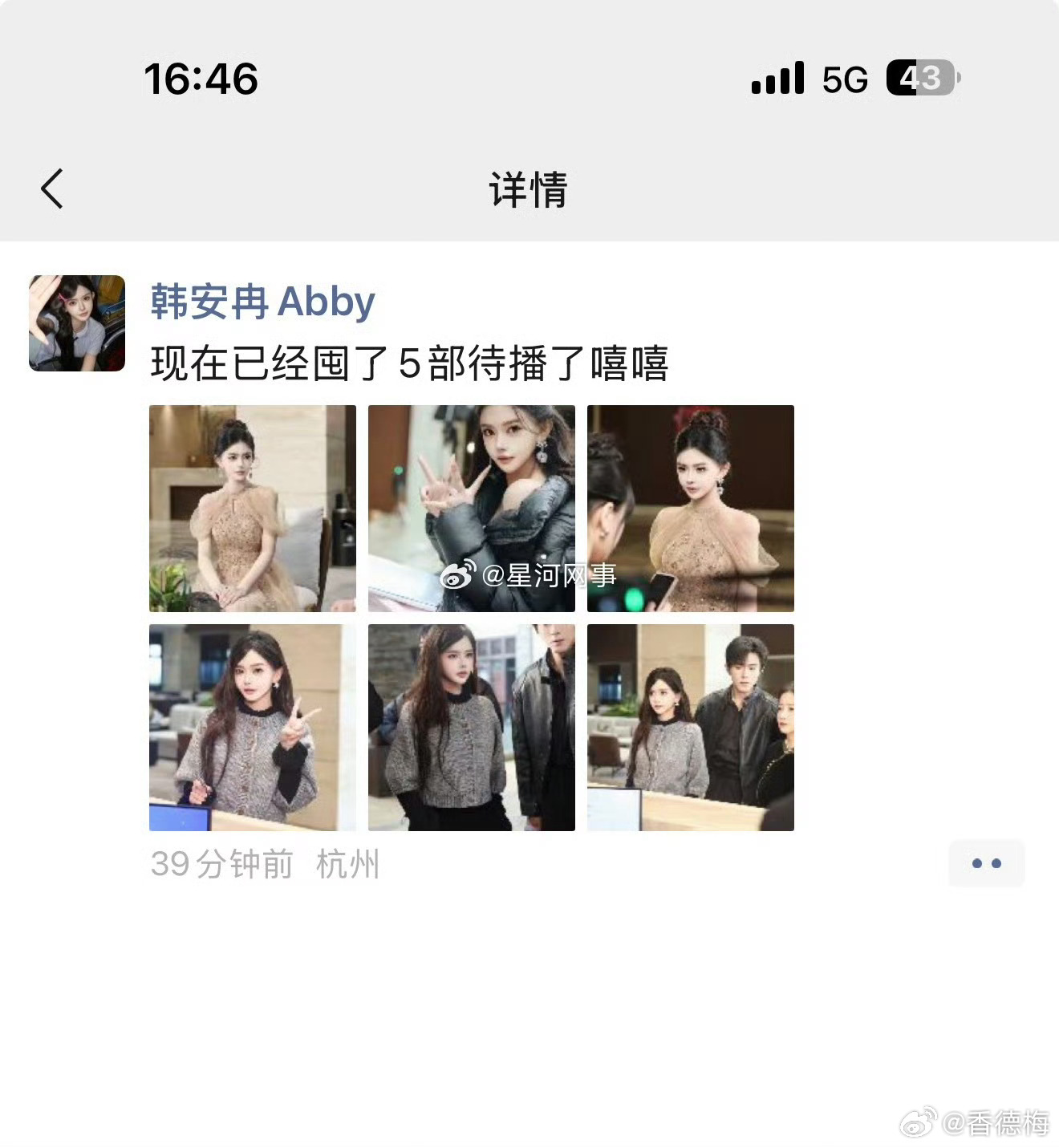 韩安冉自曝有五部待播剧曝韩安冉有五部待播短剧韩安冉发圈,曝有五部待播短剧!