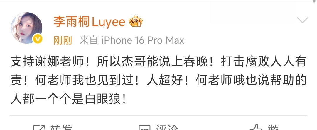 李雨桐回应谢娜喊话李雨桐说支持谢娜李雨桐发文说支持谢娜,还点到了何老师,新发文