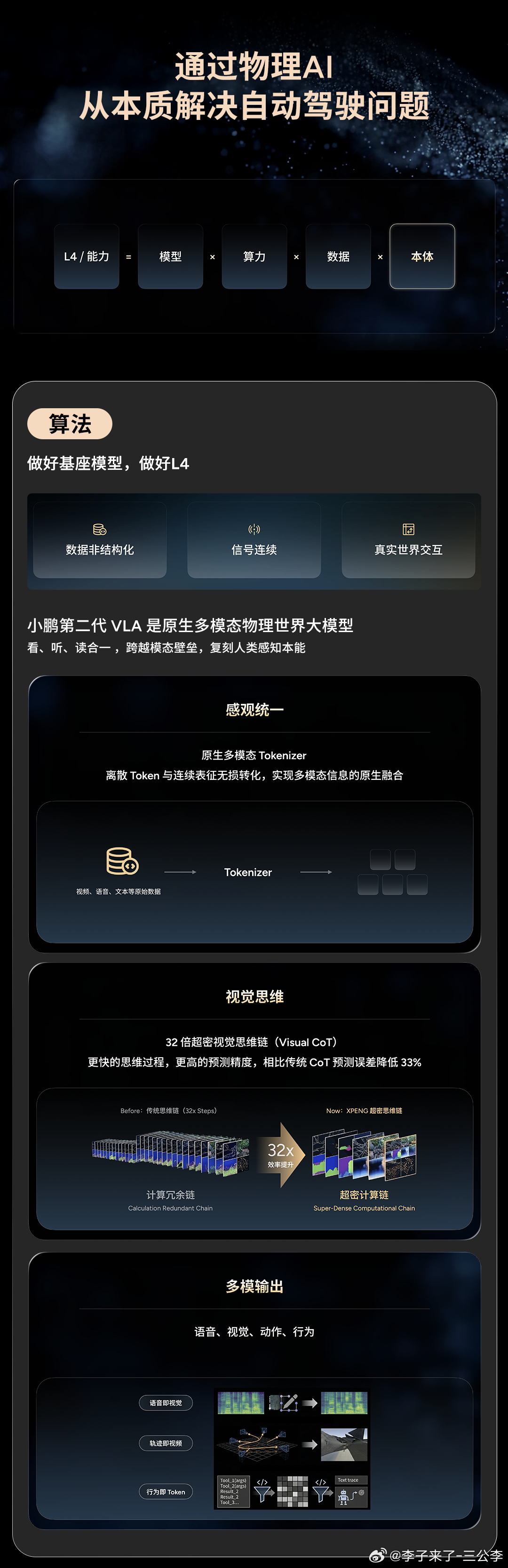 昨天小鹏发布会干货拉满,第二代VLA智驾迎来重大升级,端到端直接决策,延迟压至80毫秒内,推理效率提升12倍,重刹、急加速大幅减少,能识别异形车、避让事故、烂路预减速、夜间礼让小动物,全场景更稳更丝滑,3月下旬开始推送,家用开着更安心。