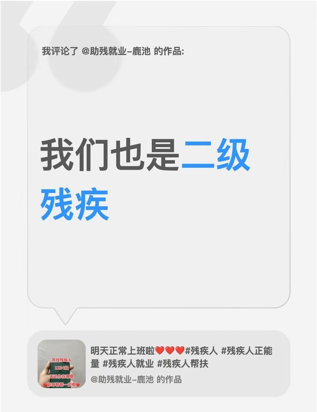我评论了@助残就业-鹿池 的作品:我们也是二级残疾