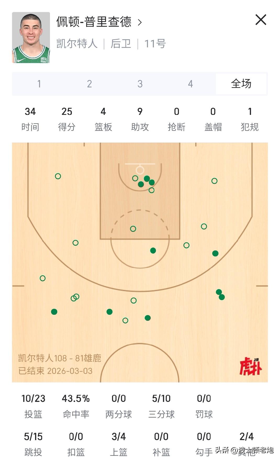 费城76人——鉴定为强队。 密尔沃基雄鹿——鉴定为弱队。 上一场打76人,普里查德唯唯诺诺,贡献本赛季第一场0分,今天打雄鹿,普里查德重拳出击,爆砍25➕9,这也印证了球迷对他的评价——“强弱鉴定器”。