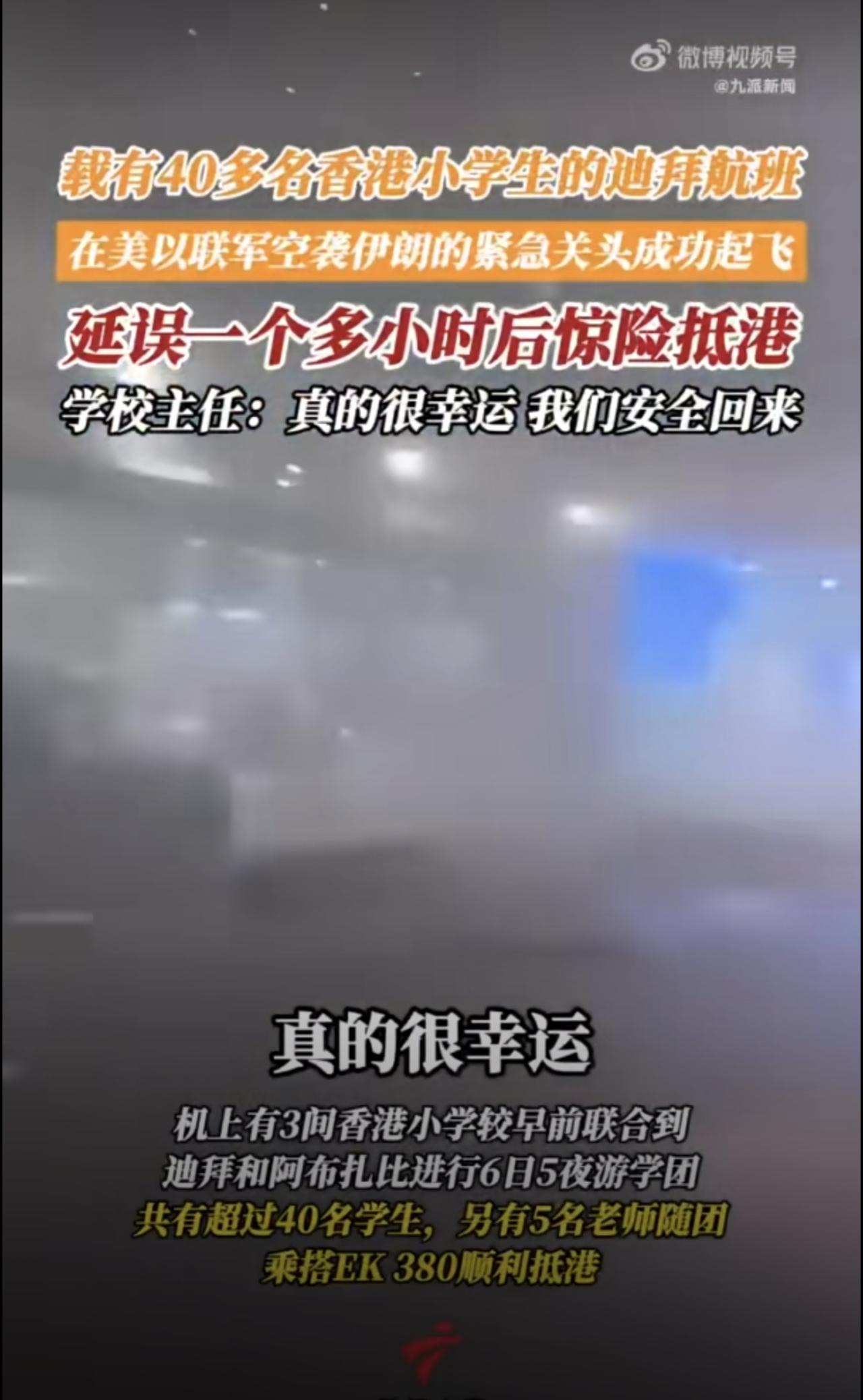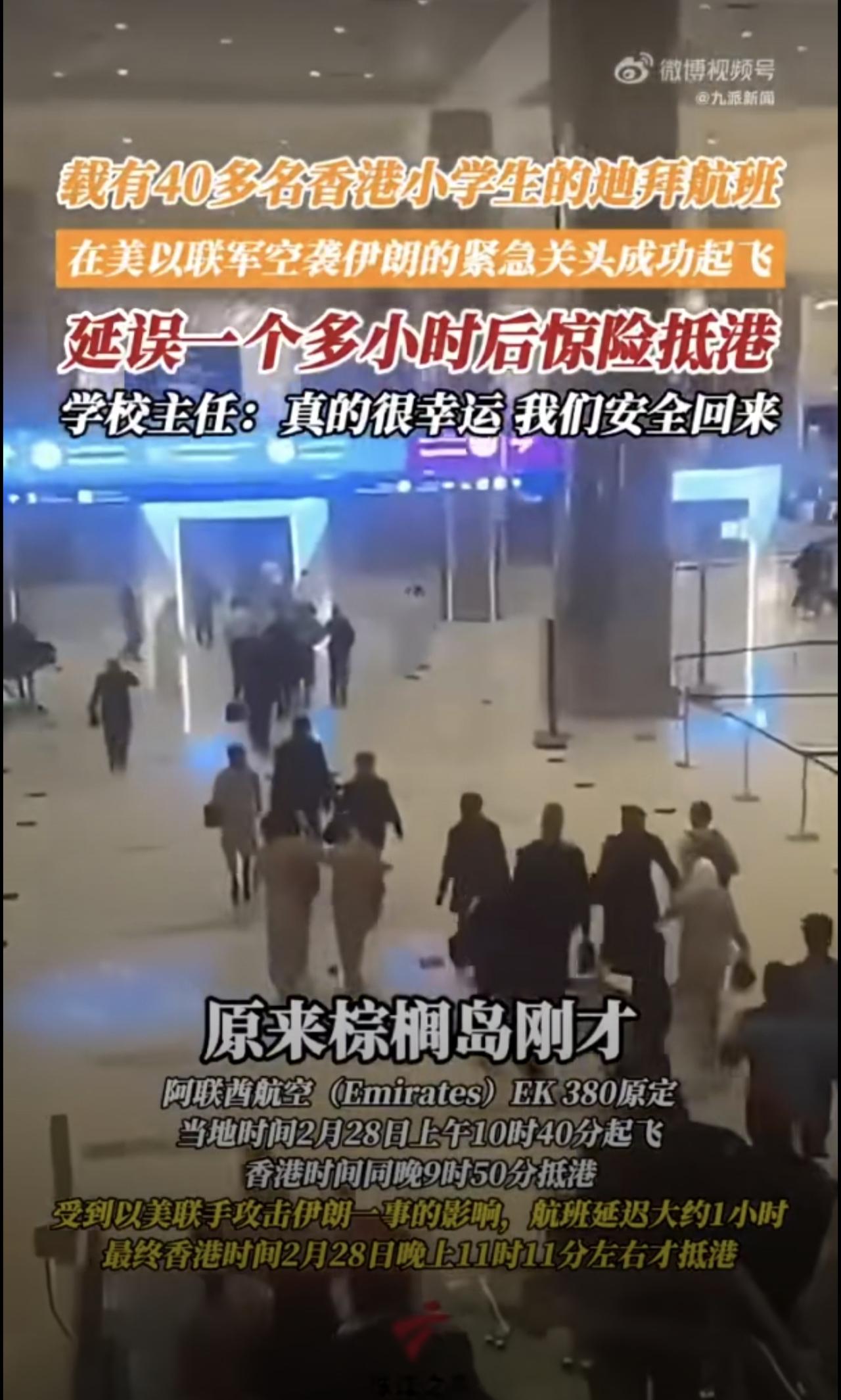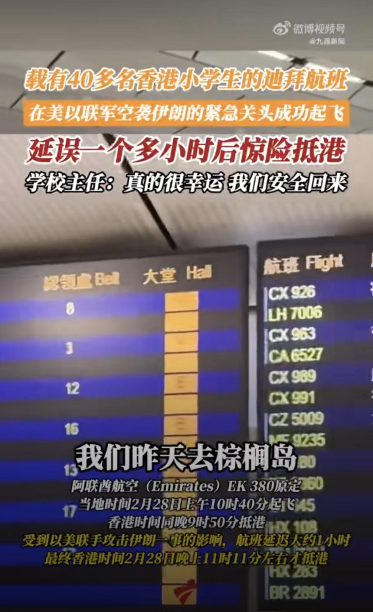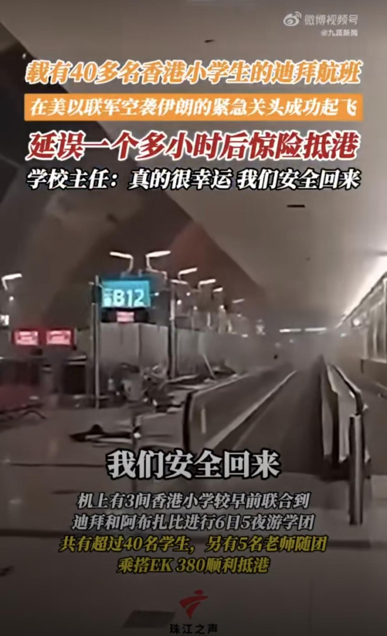 40多名香港小学生在迪拜研学,返程时受空袭影响航班延误,最终成功起飞后老师激动发声:真的很幸运,我们安全回来。