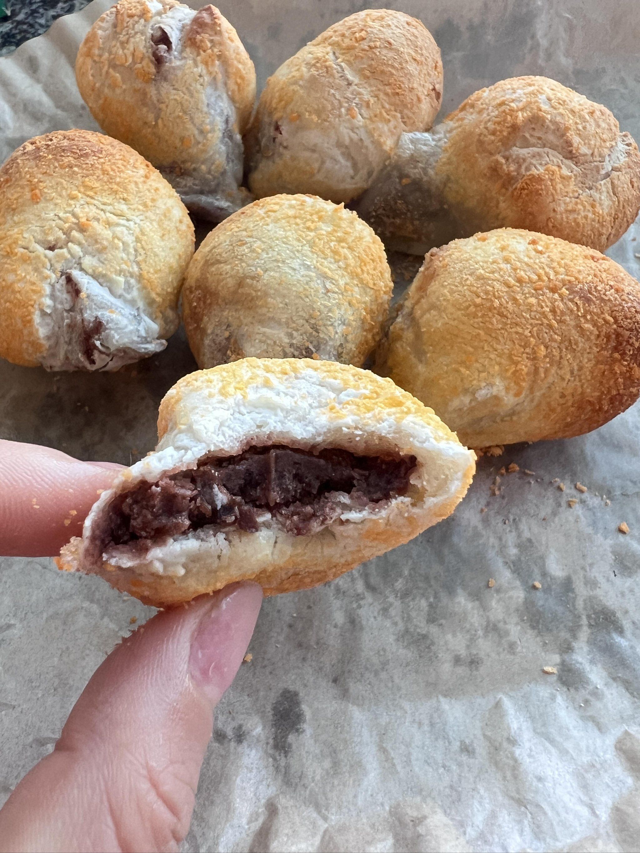 3️⃣.空气炸锅烤汤圆,裹黄豆粉/椰蓉,糯叽叽会拉丝,完全不腻!