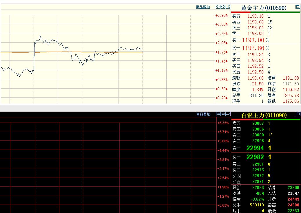 虽然夜盘黄金和白银 都是高开低走; 但是日内恢复交易后, 黄金再度拉升, 不过白银价格继续走低, 因此黄金和白银走势分化。 截止11:30分, 国内黄金期货停收于1193元, 较上一日上涨21.5元; 白银期货停收于22983元, 较上一日下跌864元。 对于后市,期货小褚观点不变!