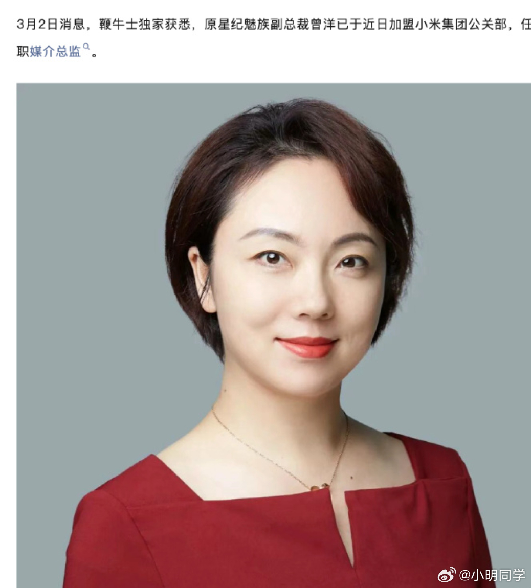 原魅族副总裁曾洋加盟小米,任公关部媒介总监。从头衔看是降级了,不过从公司看是升级。只要有能力,不愁没下家。