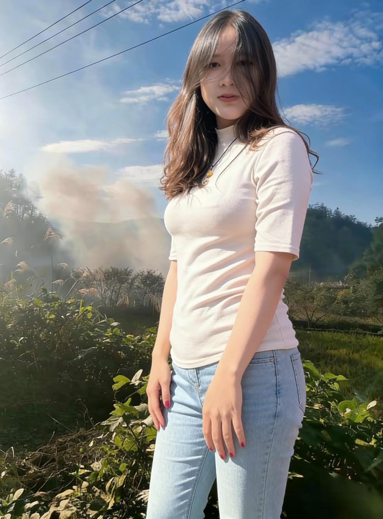 镜头捕捉到的,只是你万分之一的生动 比如把双手插进口袋时,嘴角那点漫不经心的弧度 比如对着远山比心时,眼底漾开的温柔涟漪 田埂上的脚印还没干透,城市的柏油路已在等你 … 你不必刻意扮演谁,不必把情绪修剪成标准模样 风乱了头发就乱着,阳光刺眼就眯起眼睛 白衫被风吹得鼓起,像帆载着寻常日子前行 牛仔裤磨白的裤脚,藏着走过的路和未说的话 … 有时你安静,像村口那棵沉默的树 有时你笑起来,能让整座山岗都跟着明亮 美从不是定格的画面,是流动的瞬间 是乡野的风与都市的光,在你身上相遇 是你站在那里,就让人明白 最好的风景,从不是远方的山海 而是眼前的你,带着烟火气的自在