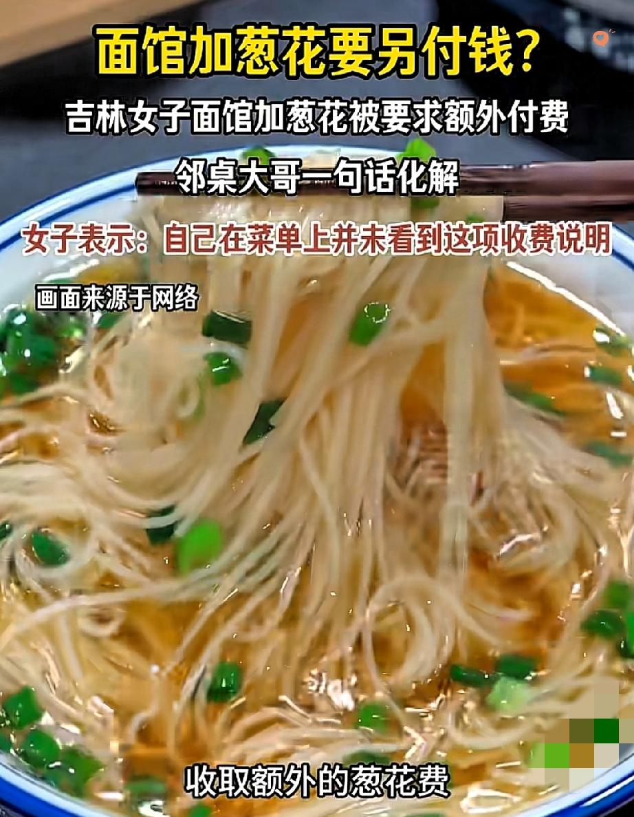 这家面馆,因为一勺葱花把口碑败光了,真的太不值。 女子去新开的面馆吃面,顺手加了点葱花,店员却突然说要额外收费,菜单没写、料台没提示,加完才收费,换谁都会生气。 老板说怕浪费才收费,可道理再对,也得明码标价在先。 不提前告知,事后较真收钱,还不让顾客录像,这不是节约成本,是格局太小,不懂做生意。 做生意靠的是回头客,不是抠这点小成本。 透明消费、真诚待人,比什么都重要。 为几毛钱的葱花闹得不愉快,丢的是长久的生意。 你遇到过这种临时收费的糟心事吗?