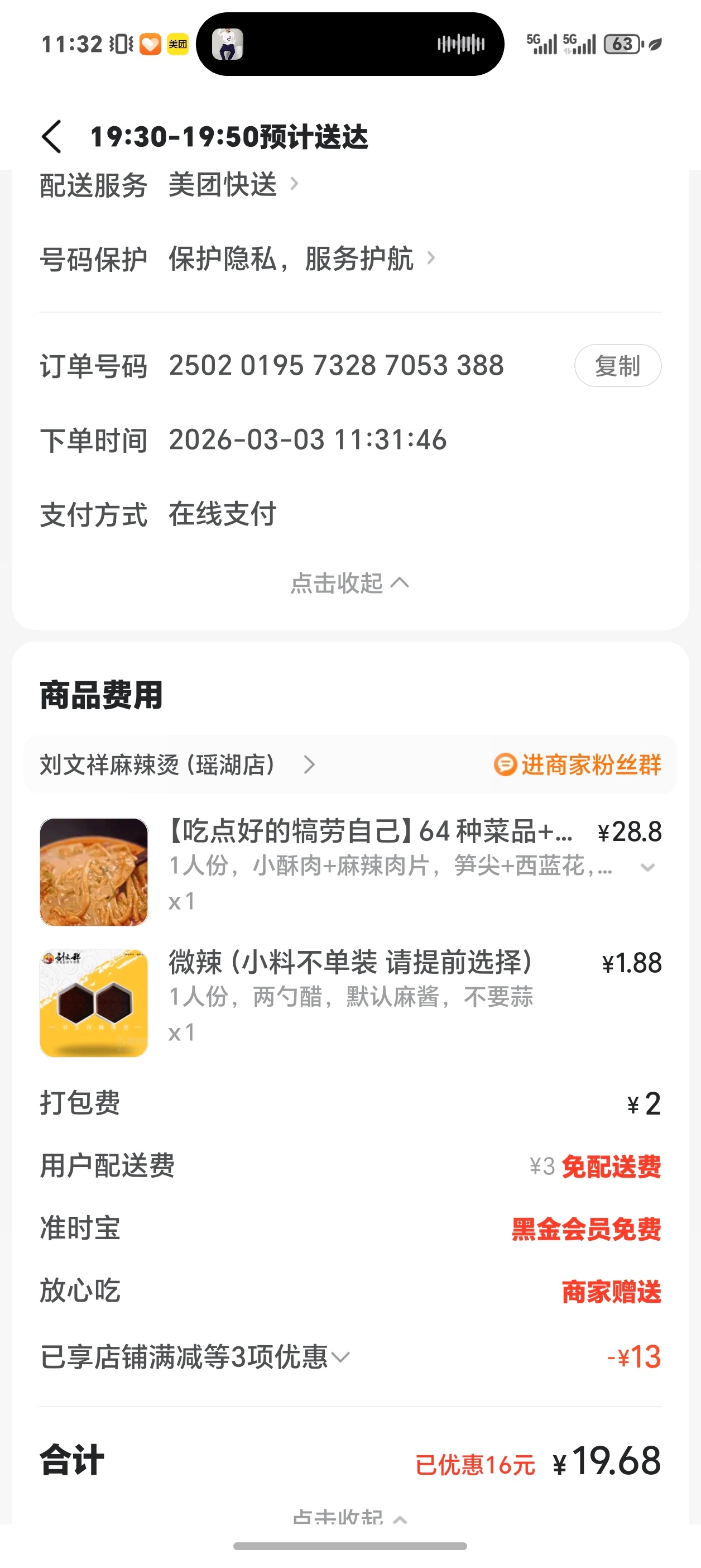 刘文祥麻辣烫暂停新合作刘文祥现在火到想吃都得提前一天点!本来想中午点一份,结果兴冲冲下完单,晚上19:30才送到