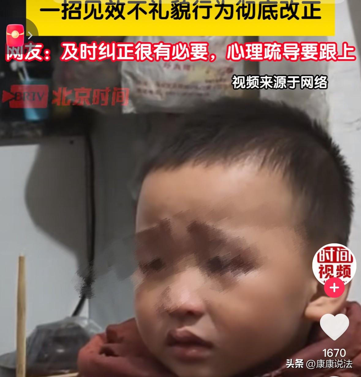 这就是教育的意义!贵州,一小男孩频繁竖中指,母亲多次批评阻止后都没有用。父亲一气之下,直接用胶带和筷子将男孩的中指固定了40分钟,说:既然你爱竖中指,就让你一次竖个够。结果自此以后,男孩就变乖了,再也没有竖过中指。网友:这疗法,见效快,不易复发! 都说六七岁的小孩子,狗嫌人不爱,胡女士的儿子也不例外。 儿子今年刚6岁,活泼好动,整天像个小猴子似的上蹿下跳。这对胡女士而言,都是常态,她也觉得小男孩嘛,调皮一点也无所谓。 可儿子最近不知上哪儿学了一个“竖中指”的坏毛病,可是让她头疼,这行为已经超出了活泼调皮的范畴,触及到成长的原则和底线了。 一开始,胡女士发现儿子竖中指,她本着教育引导的态度,很友善地提醒儿子:“宝贝,这个动作不礼貌,不能做哦。” 儿子当时乖乖地点点头,可没一会儿,又偷偷竖起了中指,还一脸调皮地看着她。 胡女士见状,有点生气了,态度立马严肃起来,批评道:“再这样,妈妈要生气啦!” 儿子却满不在乎,依旧我行我素。 不仅当着胡女士的面竖中指,有时候出去玩儿,还会对着别的小朋友竖中指,胡女士多次批评阻止,但是效果甚微。 于是,胡女士决定和丈夫商量着看能不能给儿子纠正过来,爸爸管儿子稍微能狠下心,她对儿子就是太心慈手软,不忍心动武。 再者,胡女士也站在孩子长远的成长教育角度考虑,她跟丈夫说:看似这小小的坏毛病,如果咱俩不管,以后他沾染上更多的坏毛病,走向社会,是会吃亏的,与其被社会教育,不如咱自己先教育。 一开始,丈夫也本着引导为主的教育理念,没想着“动武”。 可结果,儿子竟然更加肆无忌惮起来,依然嚣张的喜欢竖中指,不分场合,不看对象。 父亲终于忍无可忍了,说:“儿子,你既然这么爱竖中指,爸爸今天就让你一次竖个够。” 说完,父亲找来一根筷子和一卷胶带。儿子看着父亲手里的东西,还以为父亲要和他玩儿,根本没有害怕的意思,还在那儿乐呵呵的。 结果下一秒,画风突变,儿子竟哇哇大哭起来,一个劲儿求饶。 原来父亲把筷子放在儿子的中指上,然后用胶带一圈一圈地缠起来,把中指和筷子固定得严严实实。 儿子想挣脱却怎么也挣脱不开,只能眼巴巴地看着父亲,眼里满是委屈。 十多分钟后,儿子便泪流满面的求饶,认错,说再也不敢竖中指了。 父亲很严肃地教育道:妈妈跟你好好讲道理你不听,今天这个结果是你自己选择的。 就这样,父亲心一狠,足足惩罚了儿子40分钟,尽管儿子全程哭泣求饶,他都没有心软。 40分钟后,父亲小心翼翼地帮儿子解开胶带和筷子。儿子活动着僵硬的手指,眼泪汪汪地说:“爸爸,我以后再也不竖中指了,这个动作真的不好。” 自此,儿子真的变乖了,再也没有竖过中指。 《民法典》第26条规定:父母对未成年子女负有抚养、教育和保护的义务。 胡女士及丈夫作为儿子的监护人,有权对儿子的不良行为进行教育及纠正。 父亲做法虽粗暴,但有一定效果。从孩子角度看,他年纪小是非观模糊,父亲的教育方式让他感到了不适,从而记住不能这么做。 不过,父亲的这种方式也有风险,可能伤害孩子身体,还易让孩子产生恐惧心理,影响亲子关系。 所以,既不能太温柔,也不能太严厉。应先了解孩子行为动机,用心引导,让孩子明白对错,这样才能在纠正行为的同时,保护孩子身心健康。 对此,你怎么看!